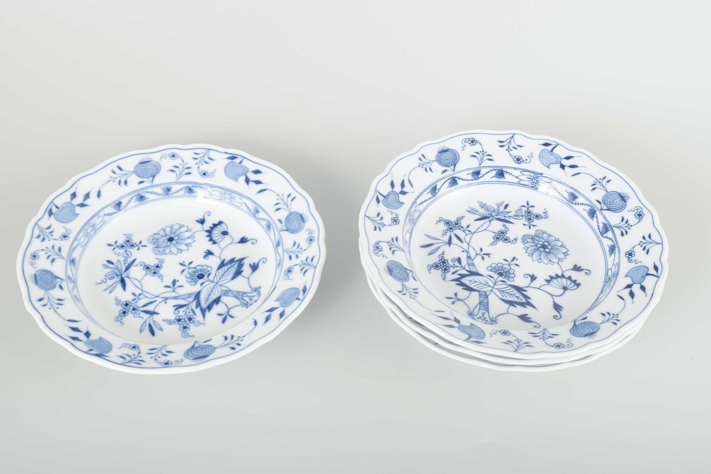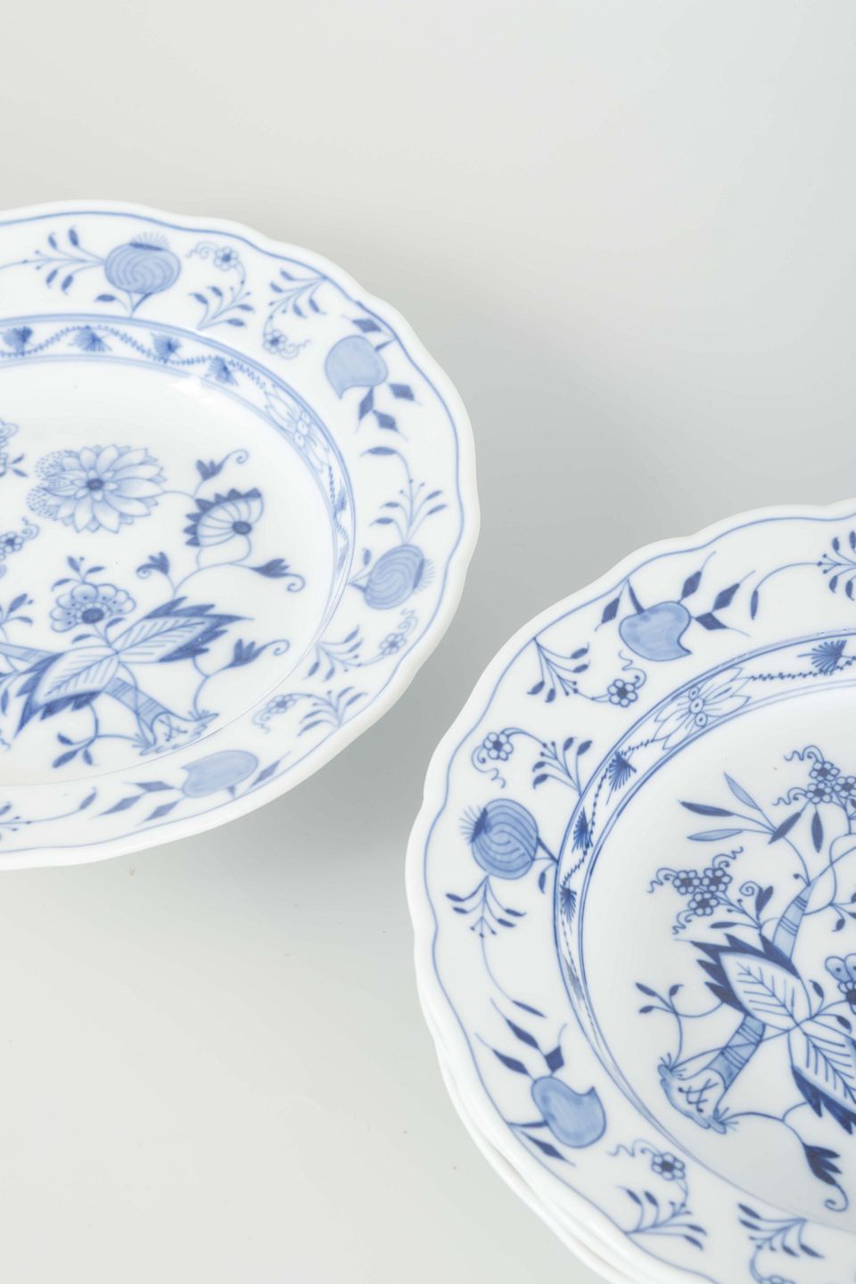 Meissen4 soup plates, “Blue Onion” pattern, early-20th century.
