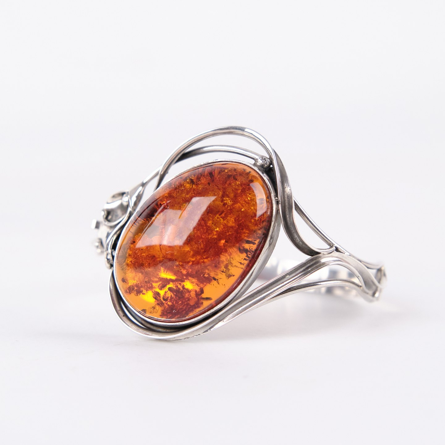 Silver bangle with amber and safety clasp. Unique jewelry design with amber.— Type: Bangle