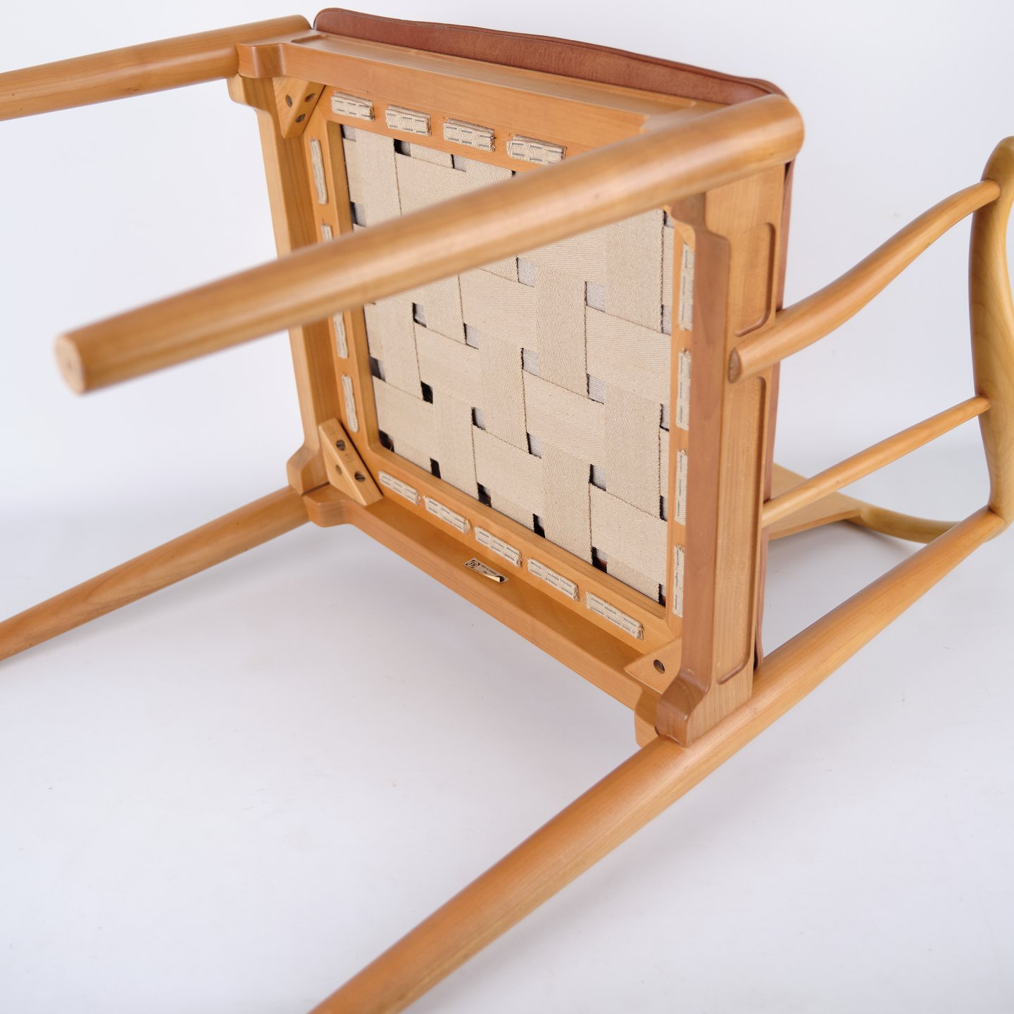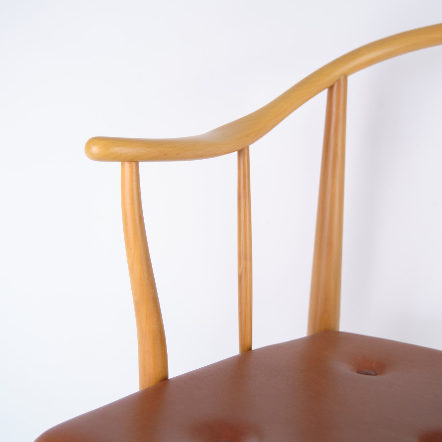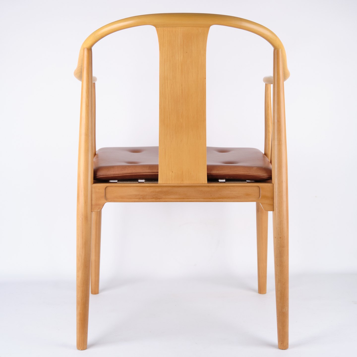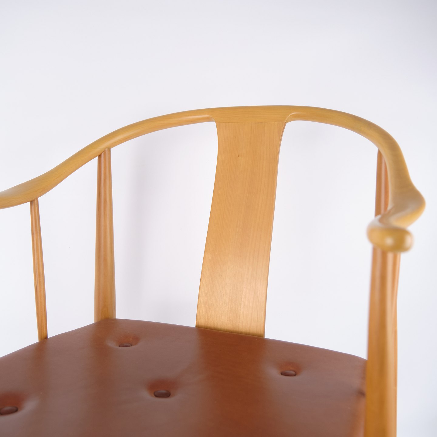 China Chair FH4283 by Hans J. Wegner for Fritz Hansen. Cherry wood with cognac leather seat. Danish design icon.— Designer: Hans J. Wegner