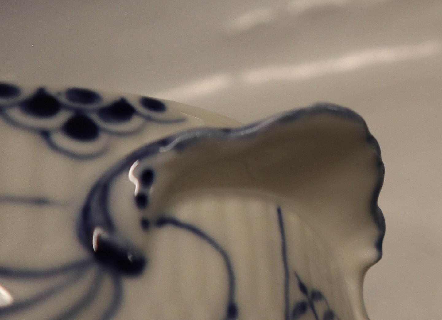 1 pcs in stock Factory first but with micro chip on the handle see images1129-1 Ragout bowl, oval 1 qt. ca 16 x 27.5 cm Royal Copenhagen Blue Fluted Full Lace. In nice and mint condition, Voll Spitze