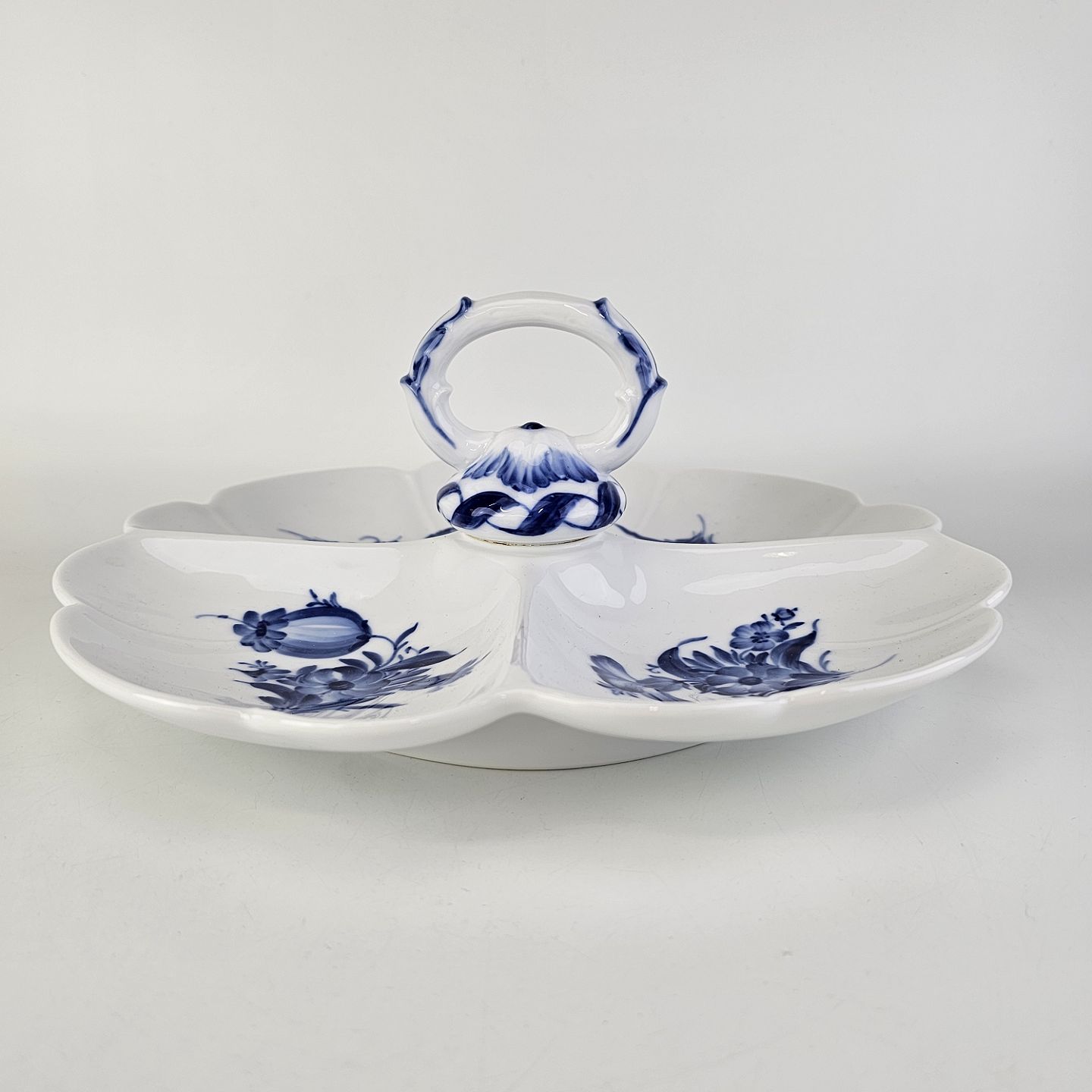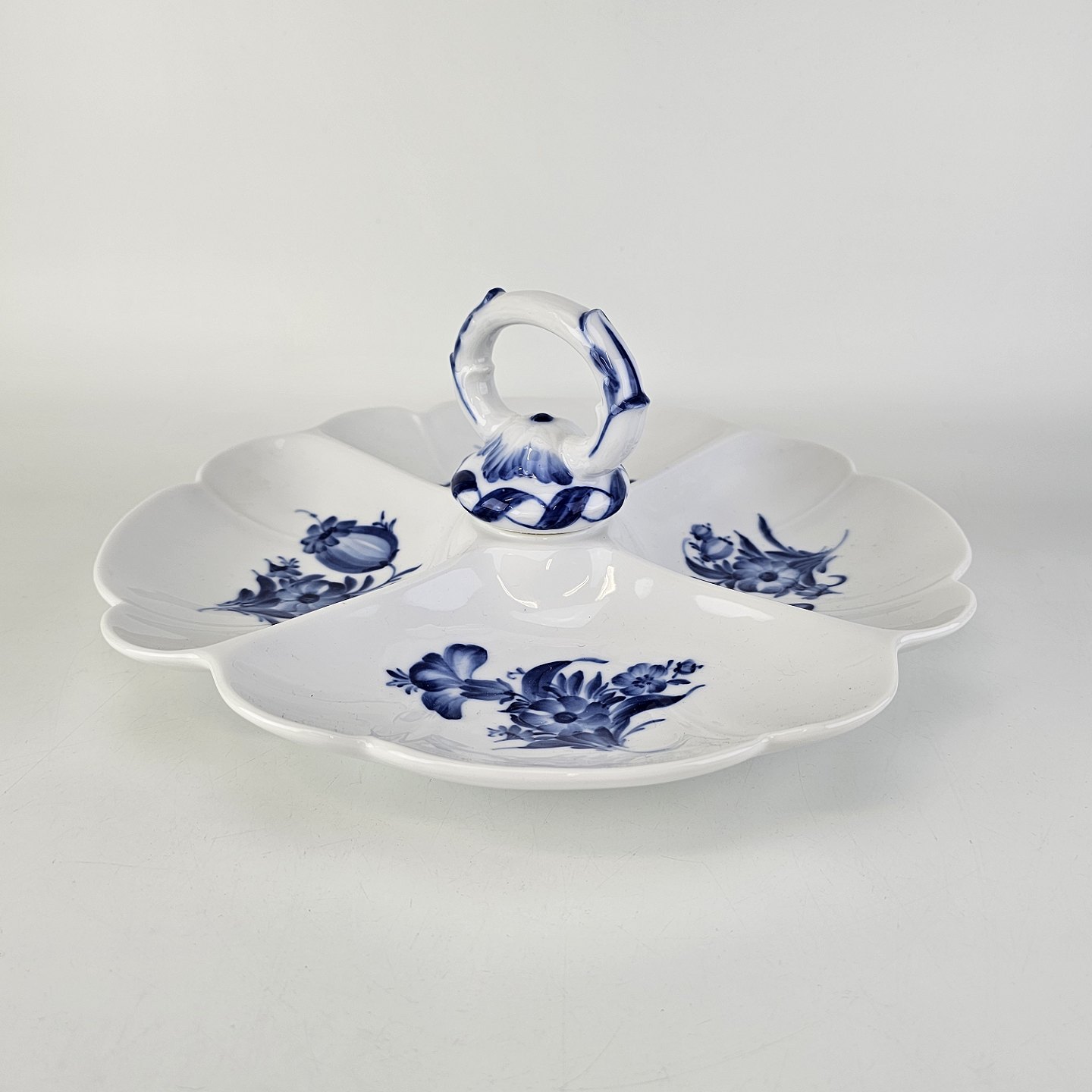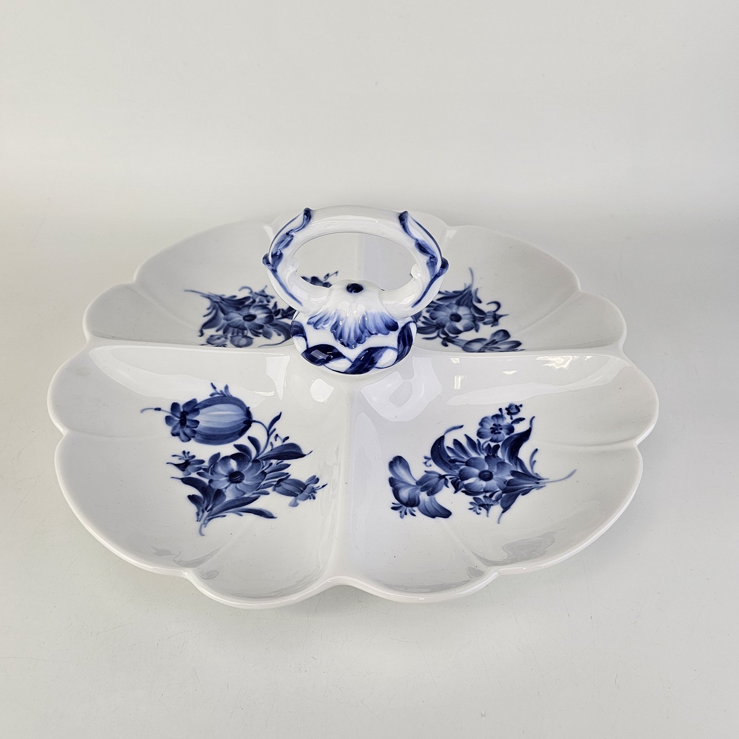 Cabaretfad i hvidt porcelæn med dekoration af blå blomster fra stellet Blå Blomst