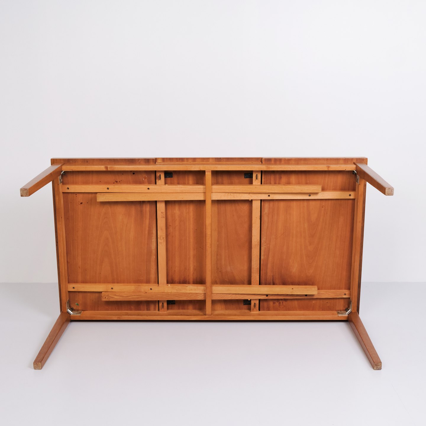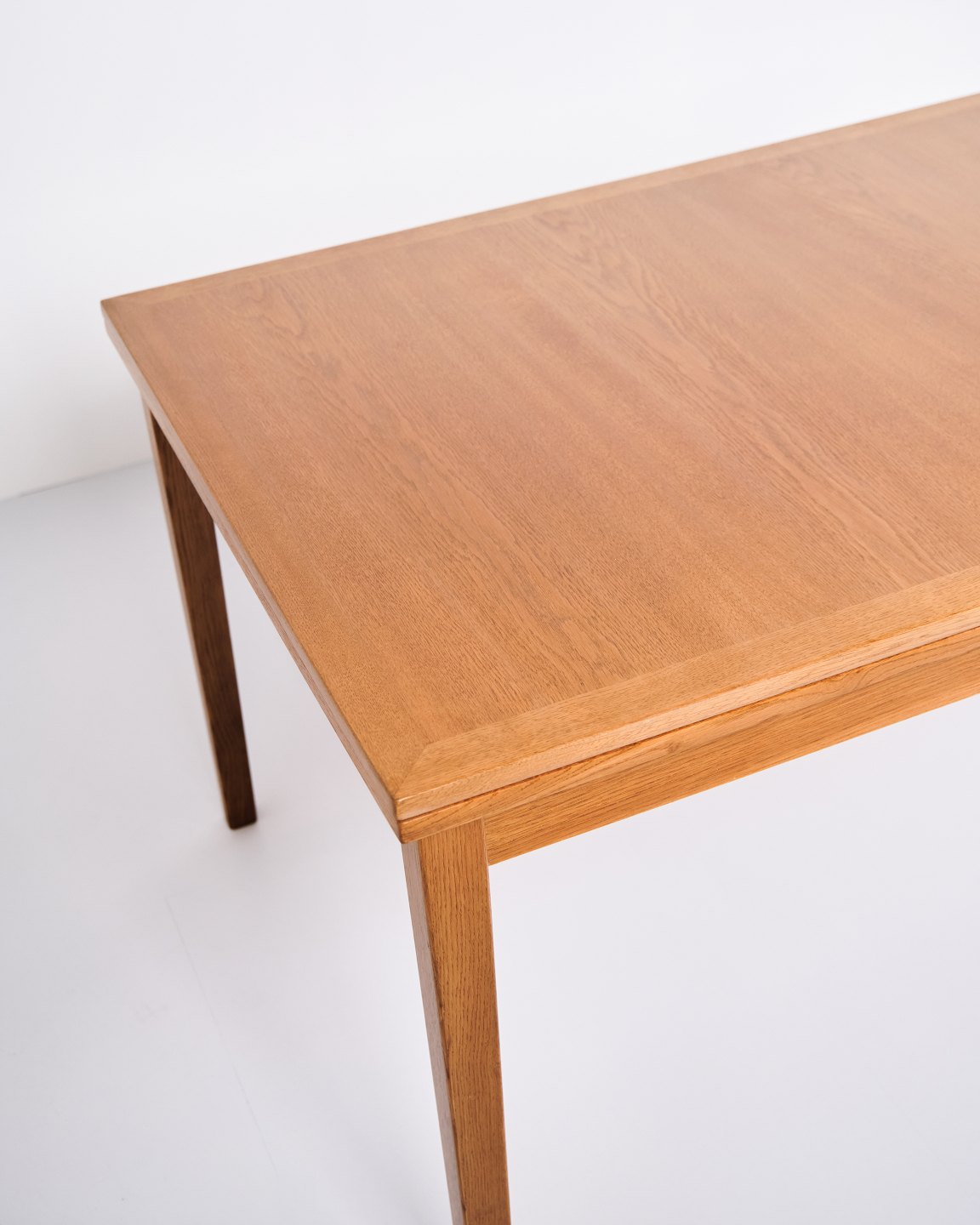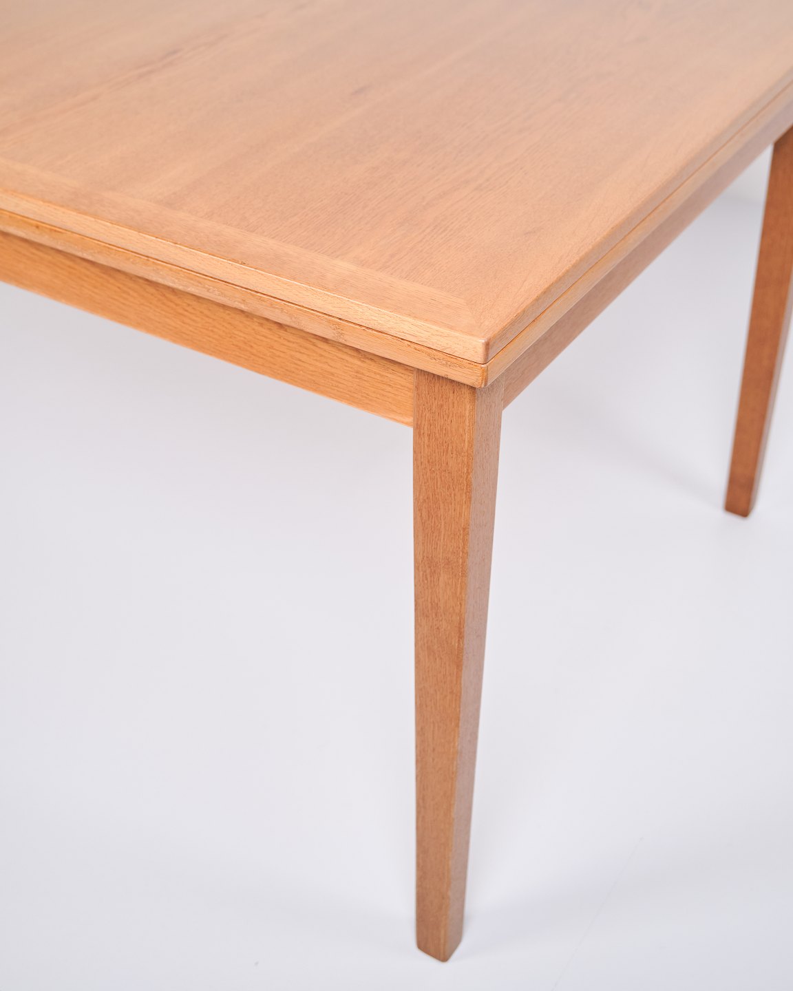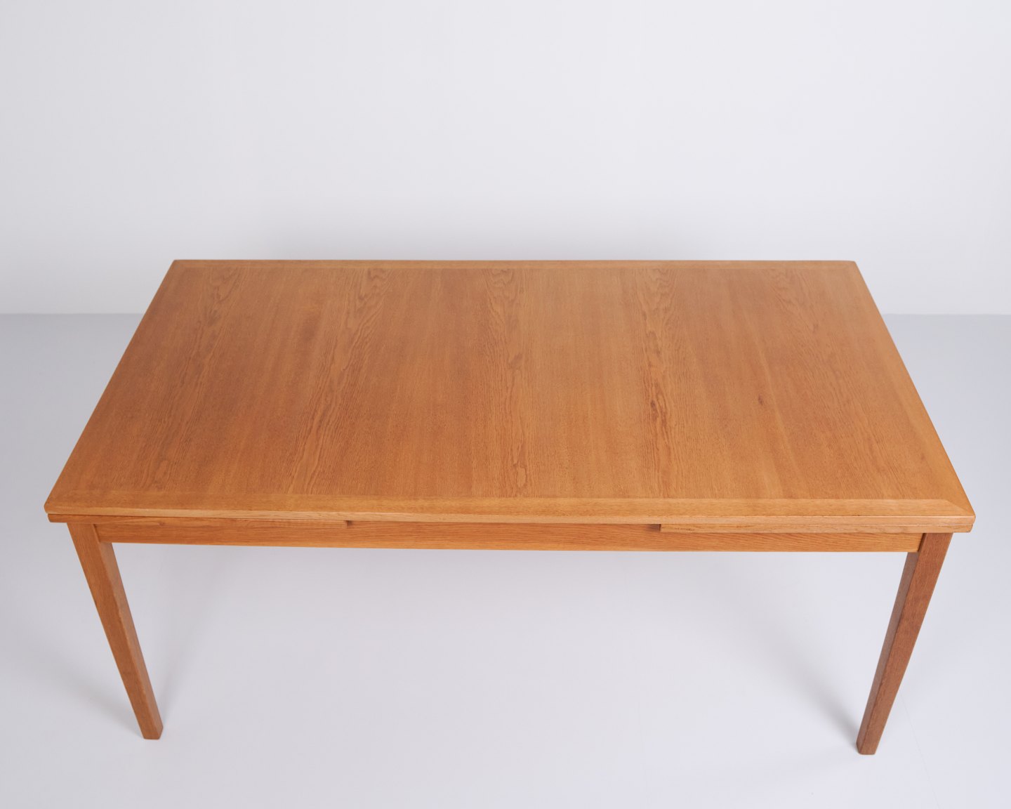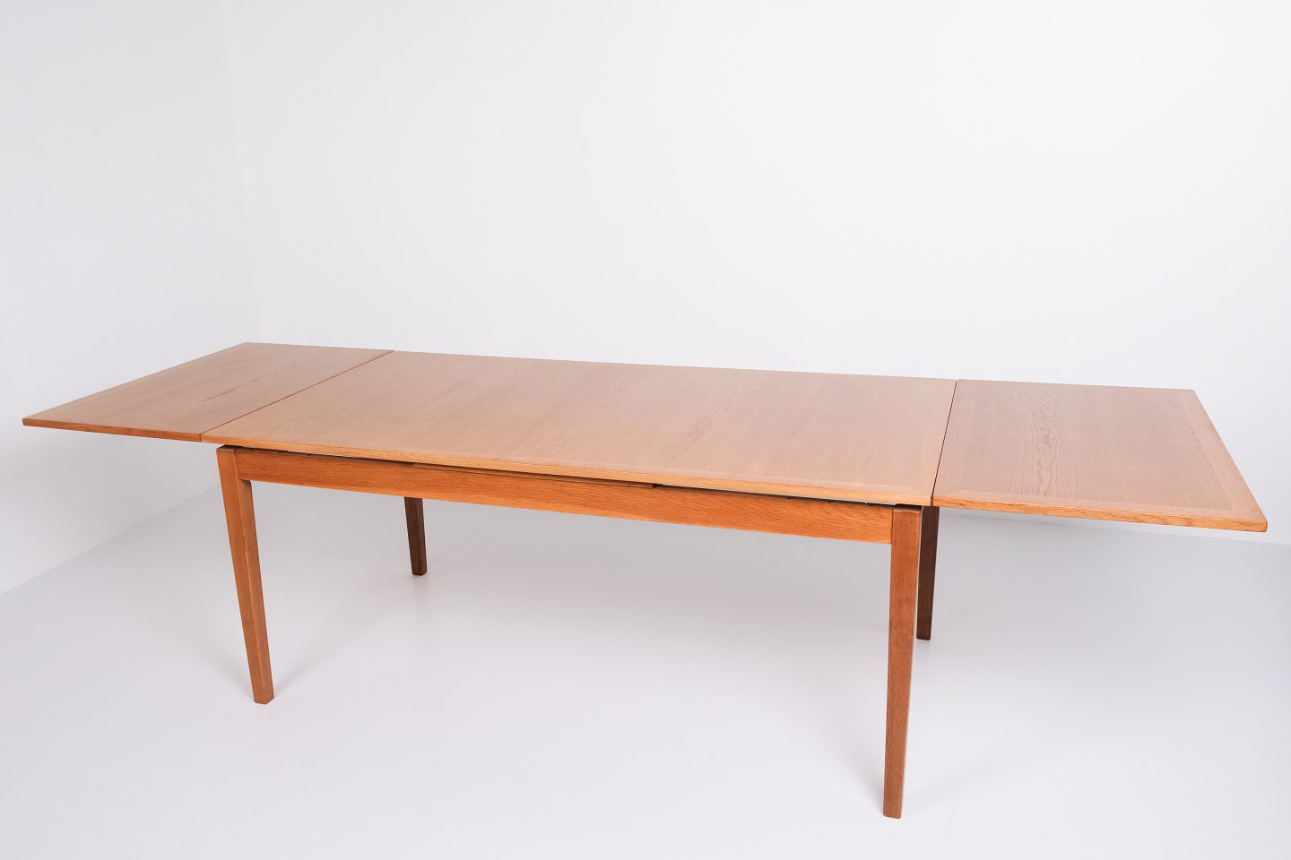 Kai Winding oak dining table from the 1960s. Slagelse Møbelfabrik. Pull-out with two leaves, 55 cm each.— Origin: Denmark
