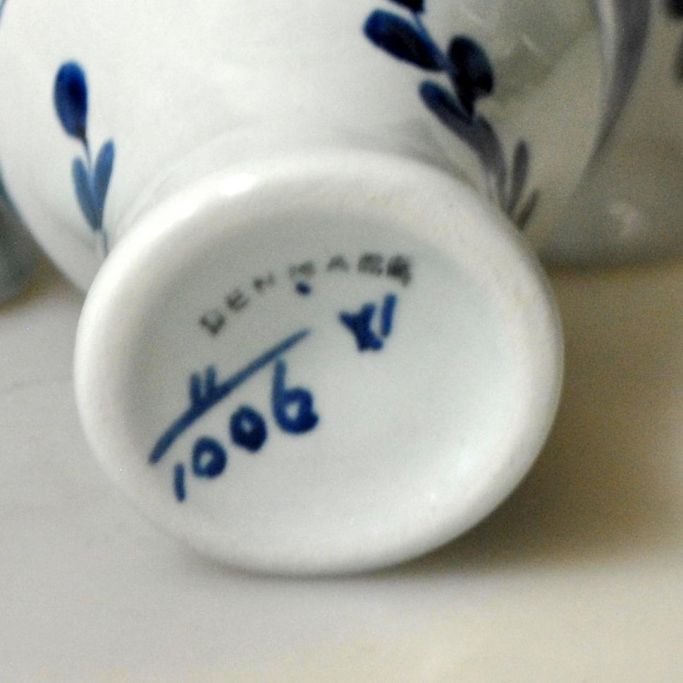 Royal Copenhagen, Trankebar, egg cups, faience no. 1006, 20th century. Copenhagen, Denmark. Stamped. H.: 6 cm.1. Quality.