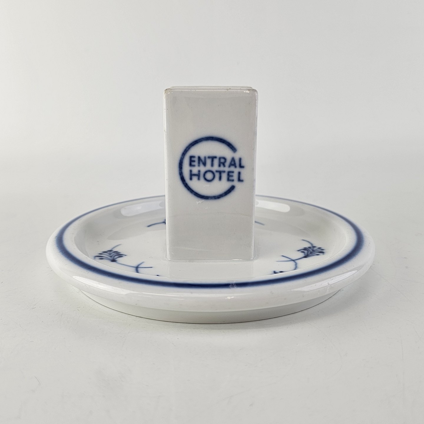 Tandstikkeholder i hotelporcelæn med motiv fra restaurant Kilden i Aalborg fra stellet BlåmaletProducent Bing & Grøndahl