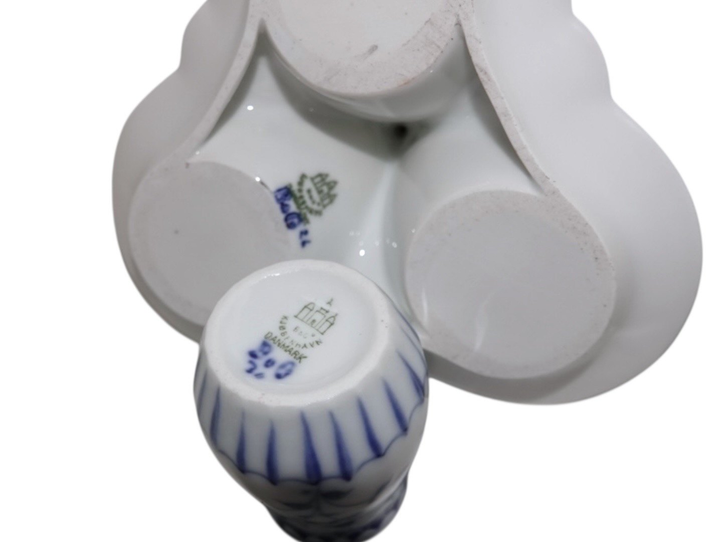 Bing & Grondahl Butterfly Dickens Plet de menage with mustard jar, salt- and pepper shakers with stoppers.The factory mark tells, that this was made between 1915 and 1948.