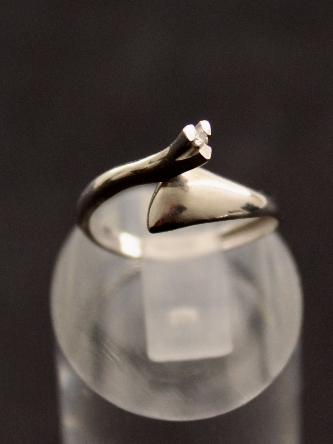 18 carat modern gold ring size 53 with small diamond stamped 750 HU by goldsmith H, Ulriksen Fredericia item no. 624155 Dealer