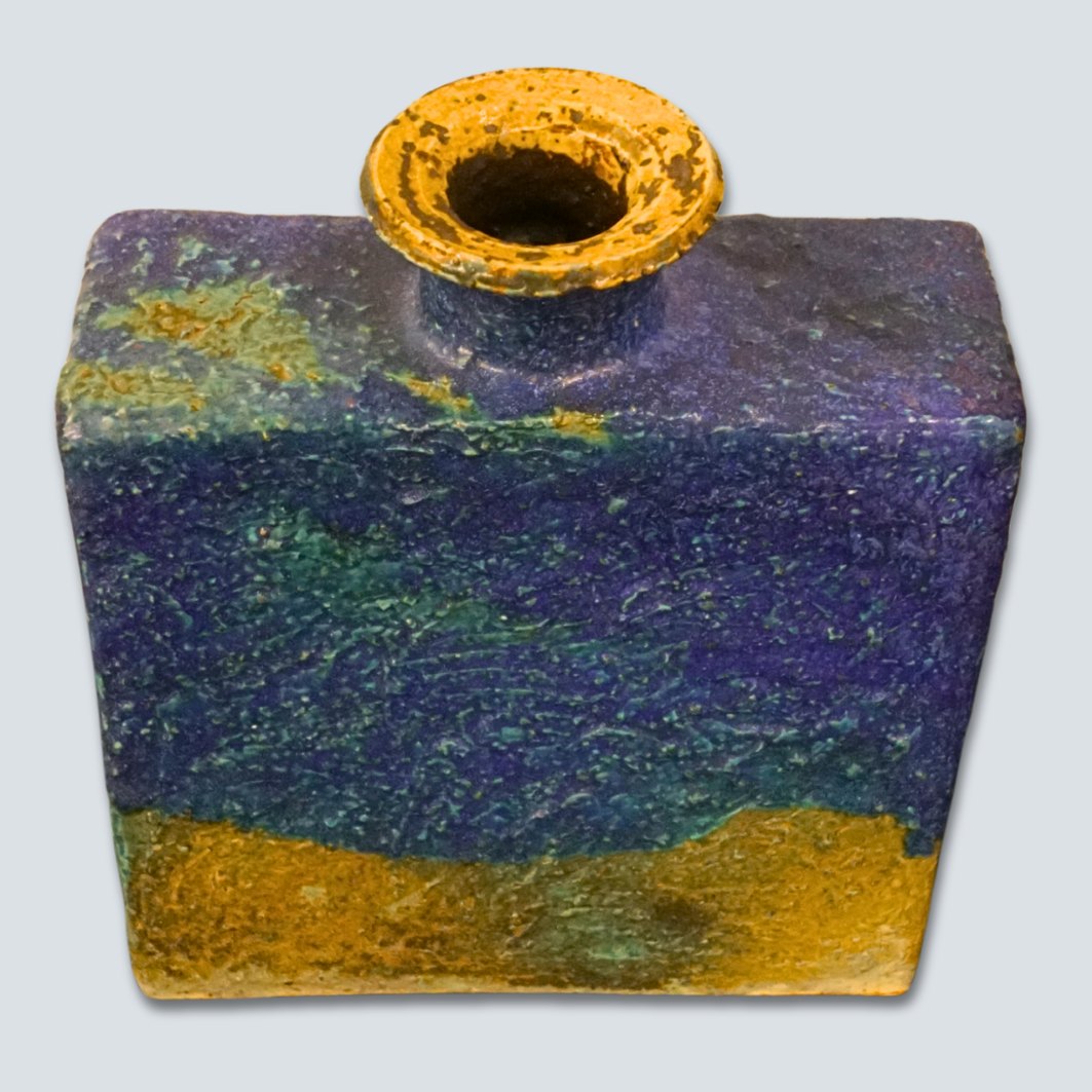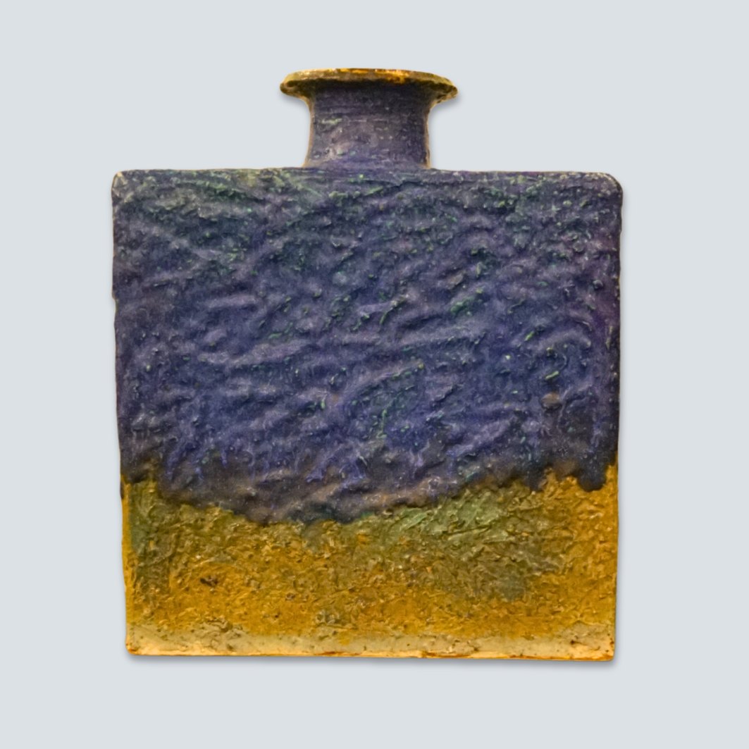 Annikki Hovisaari for Arabia; Square ceramic vase with blue glaze. From the 1970s.H. 25.5 cm. L. 21.5 cm. W. 8 cm.