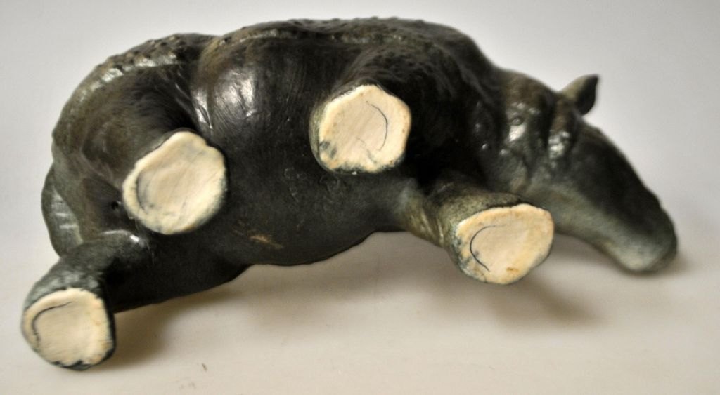 Carlsen, Paul Hauch (1921 - 2006) Danmark: Et næsehorn. Stentøj. Grønglaseret. Signeret: PHC Samsø. L.: 20 cm. H.: 11 cm.