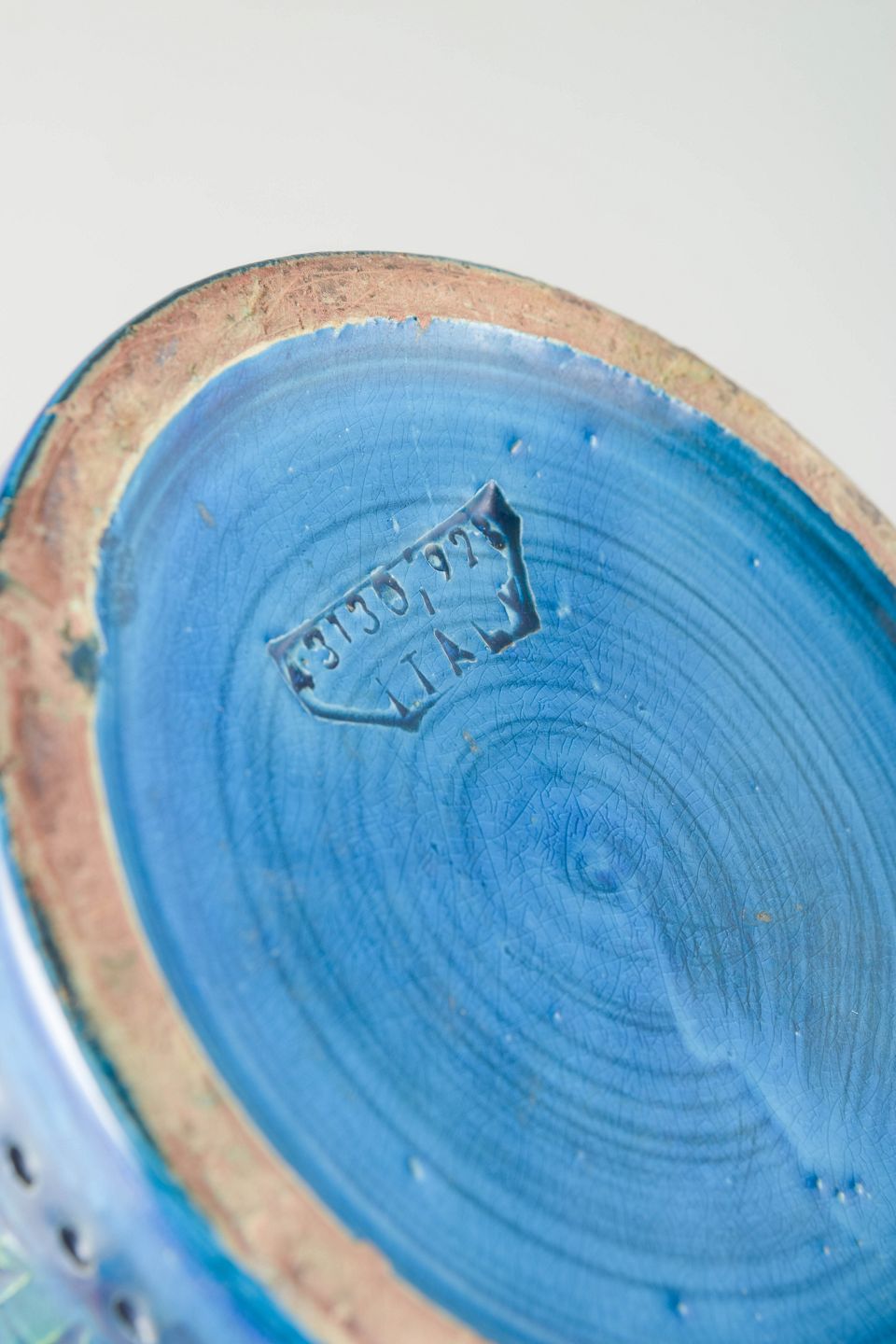 Aldo Londi served as artistic director at Bitossi from 1946 and created the renowned Rimini Blu series in the 1950s. Each piece was hand-decorated with incised patterns and finished in signature blue-green tones — today among the most sought-after icons of Italian mid-century design.