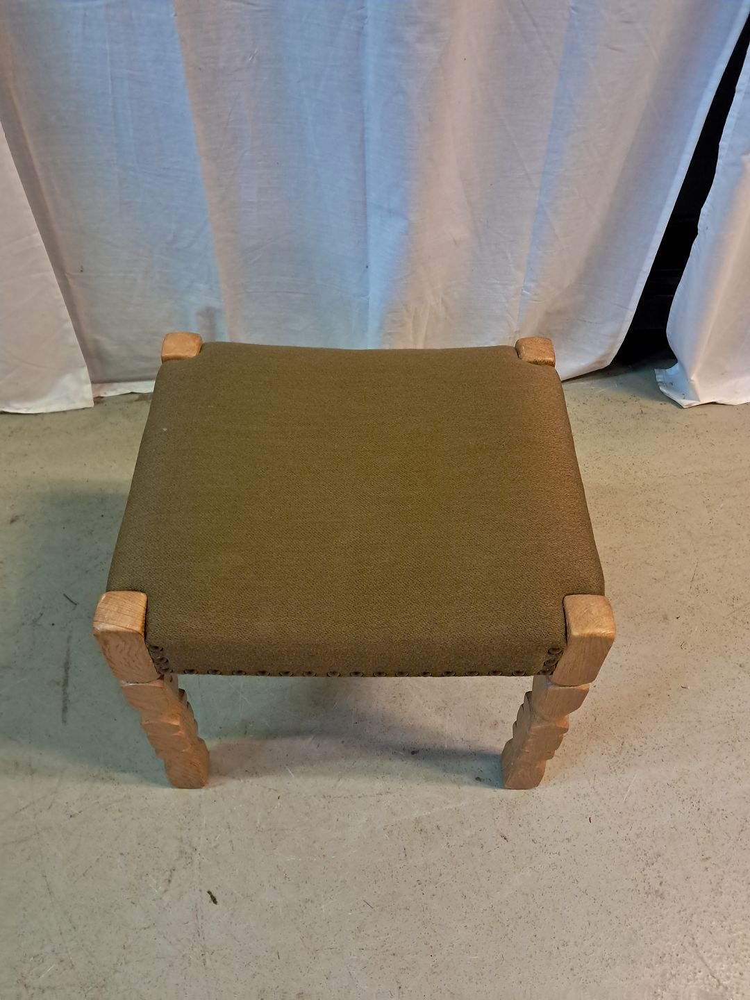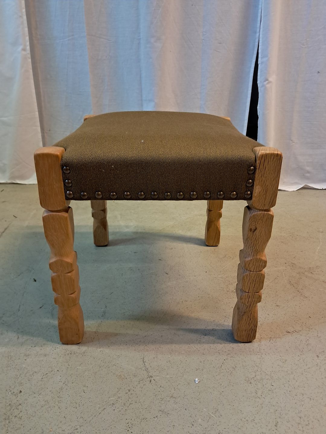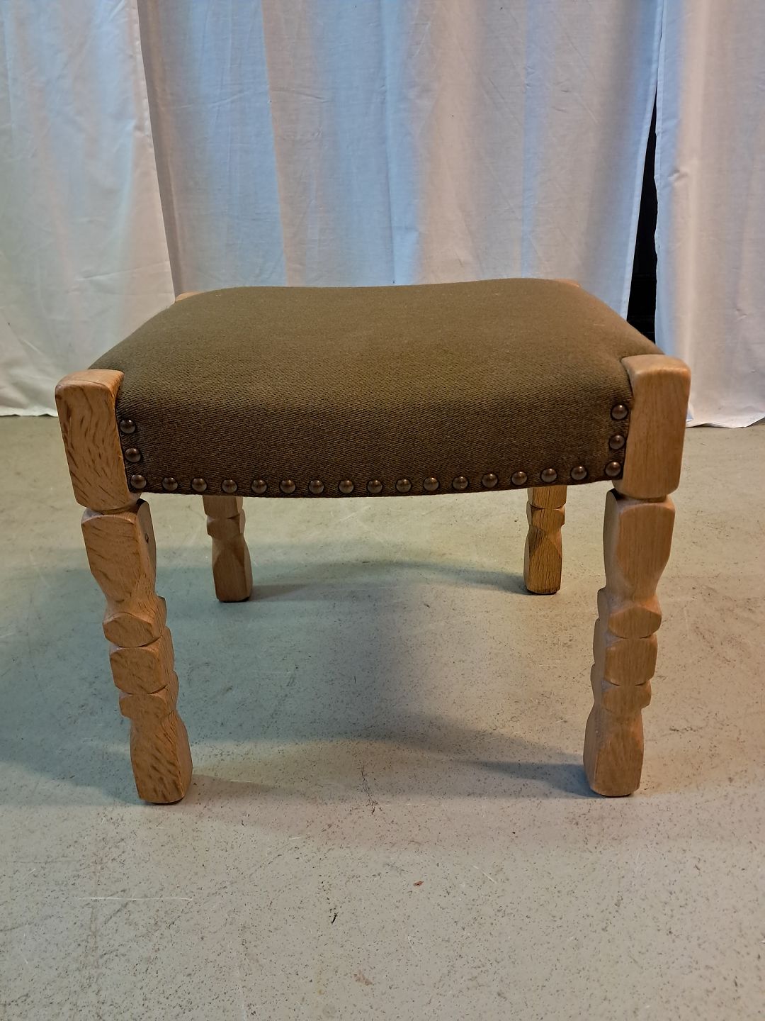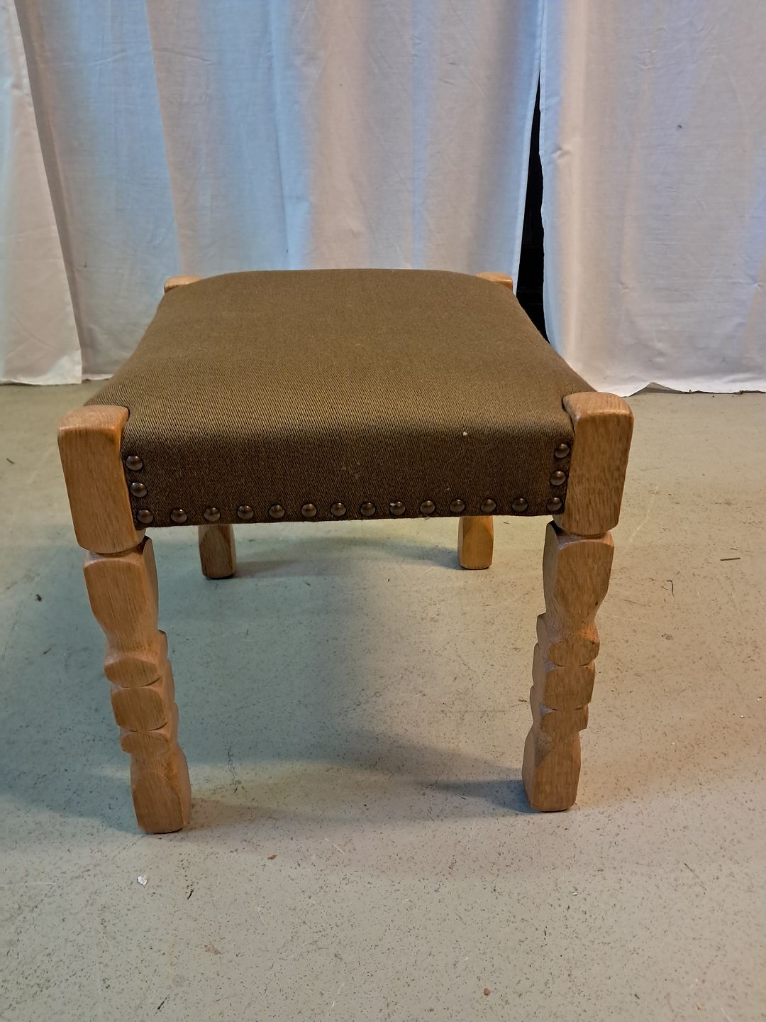 Skammel i massivt egetræ, fra 1980erne.Den har brugsspor.
