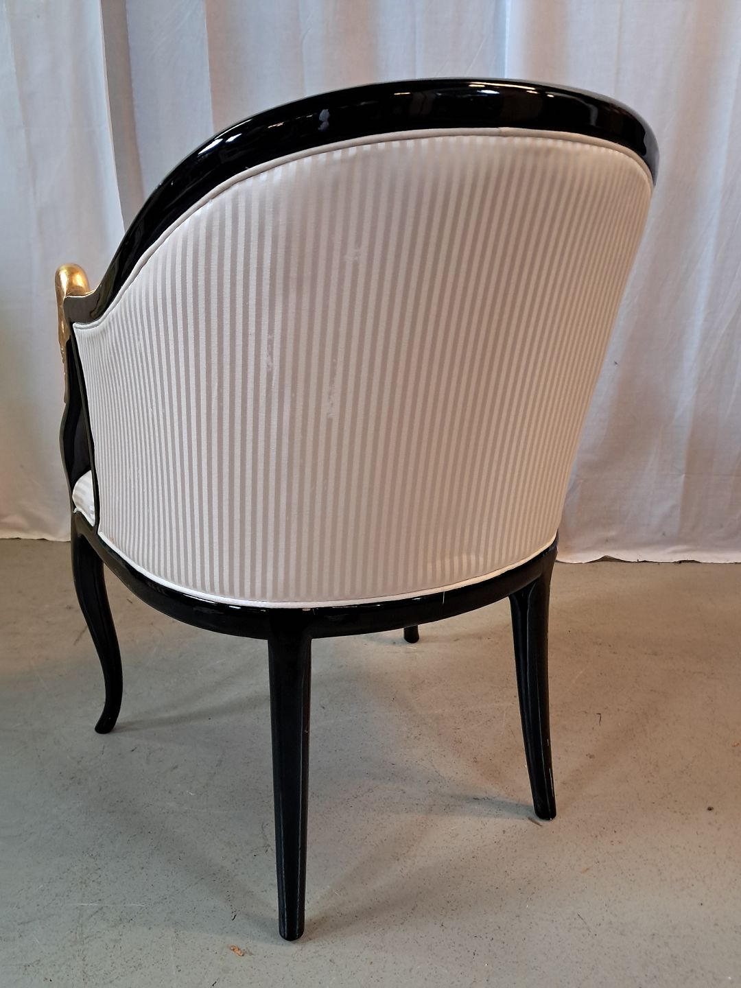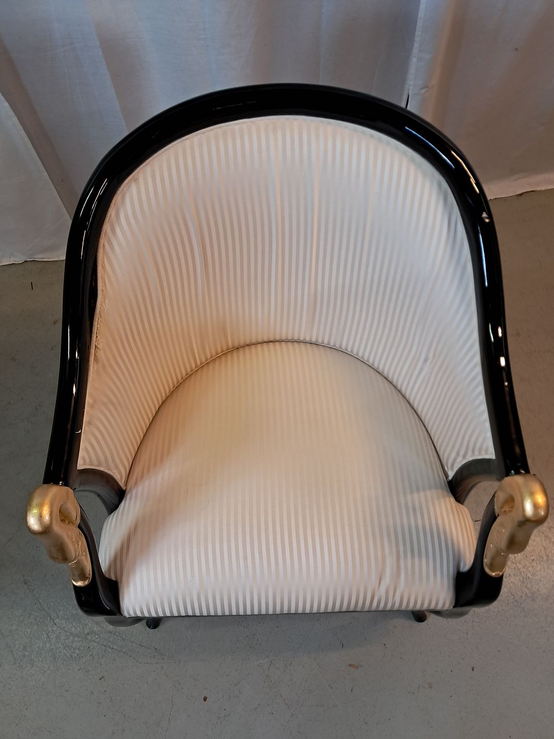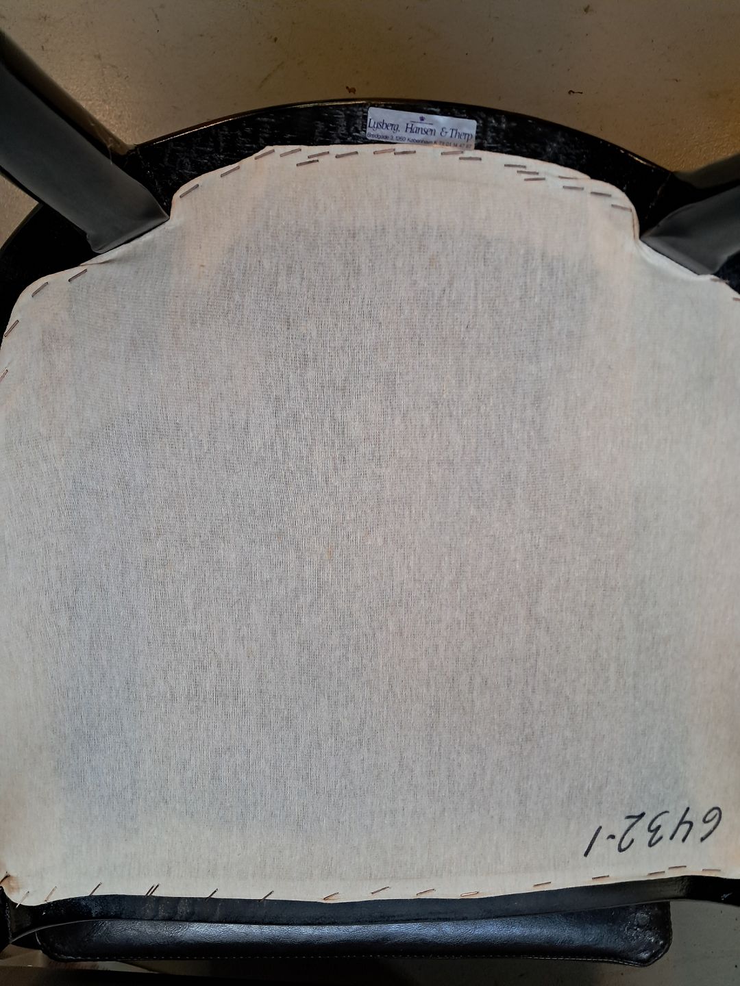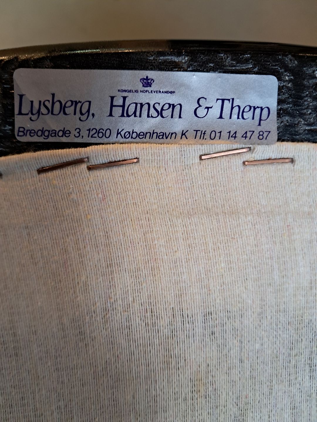 Lysberg Hansen og Terp armstol i malet træ, fra 1990erne.Den har brugsspor og defekt betræk. (se foto)