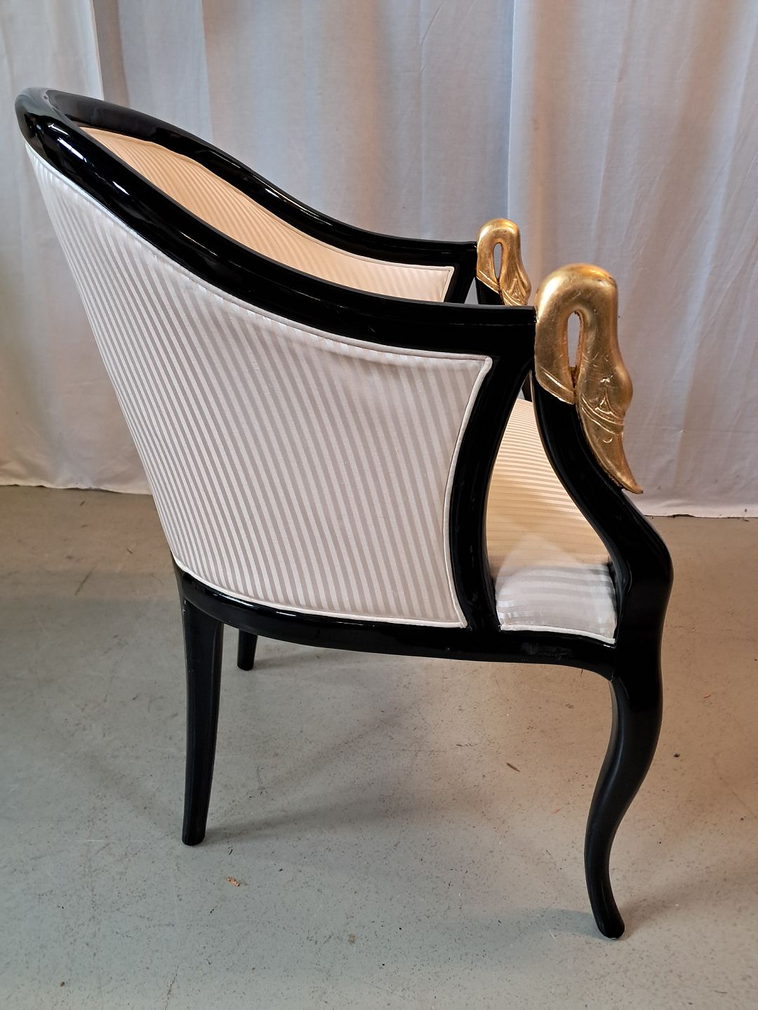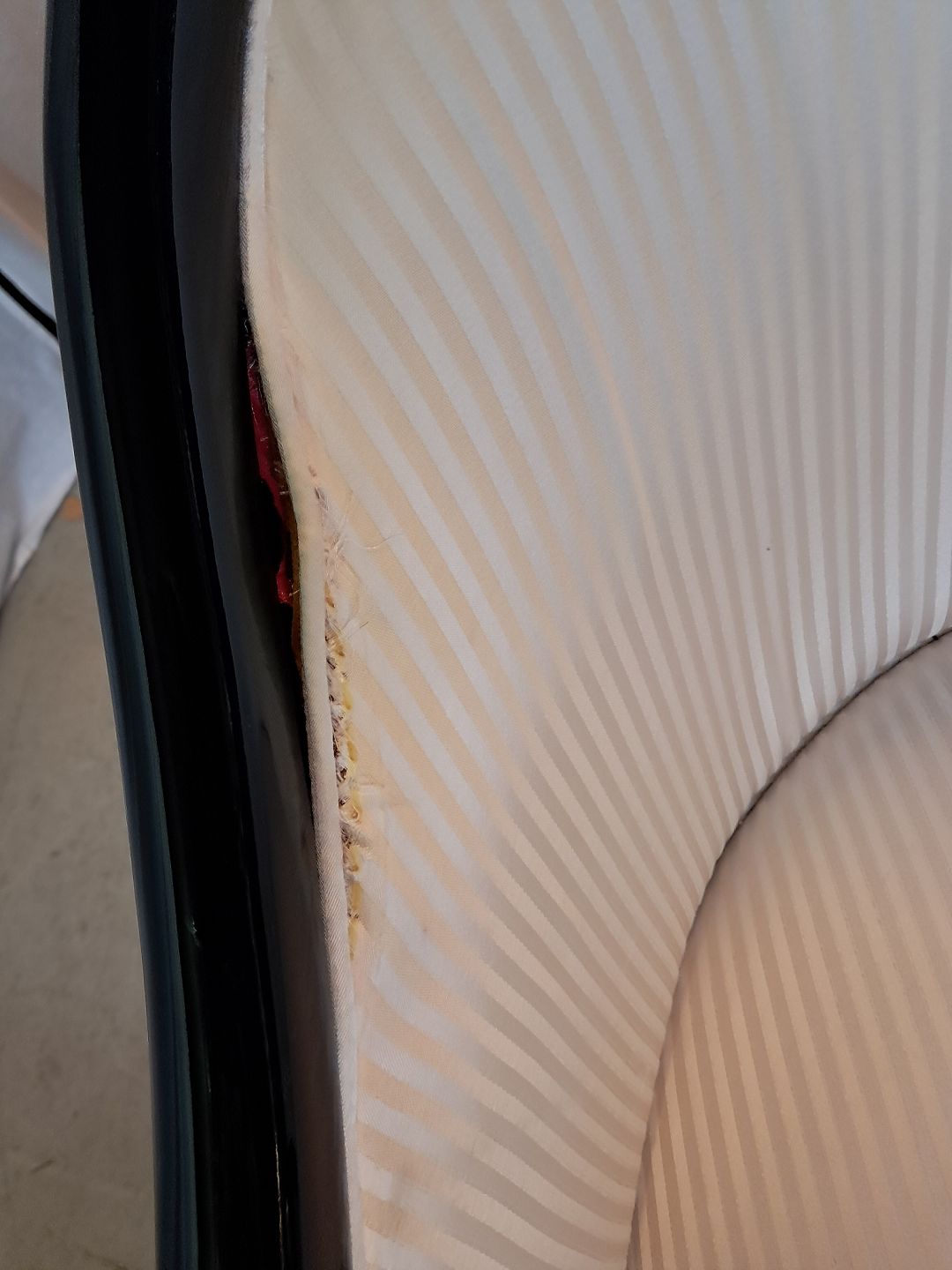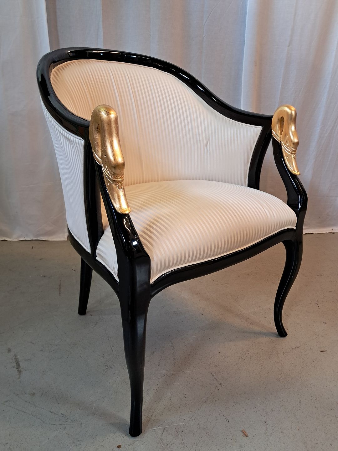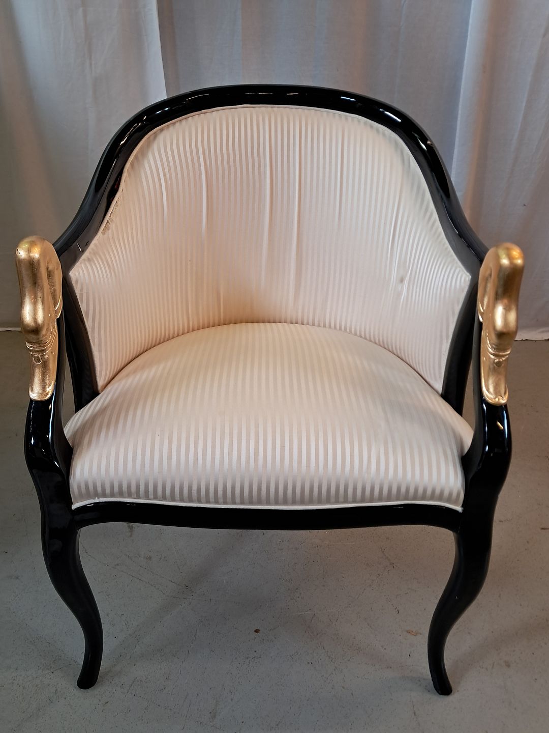 Lysberg Hansen og Terp armstol i malet træ, fra 1990erne.Den har brugsspor og defekt betræk. (se foto)