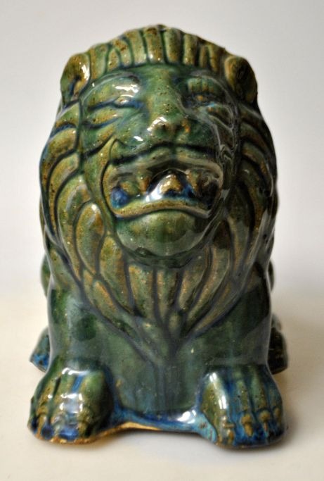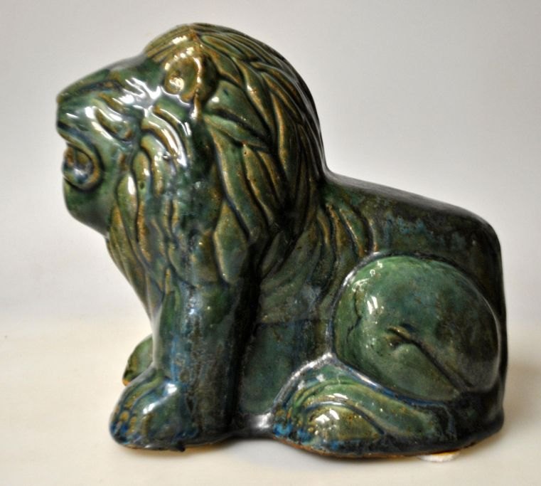 Ceramic lion, China. 19th century. With green/bluish glaze. H: 19 cm.Item number: 28479