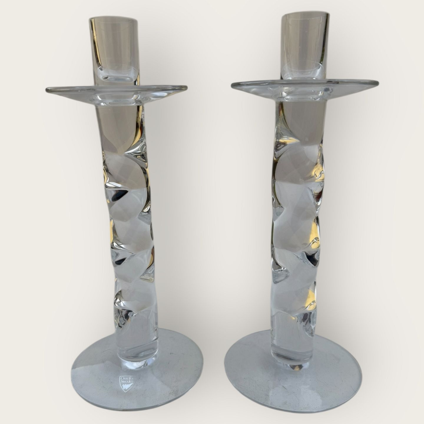 Orrefors, Sverige, et sæt lysestager i glas, højde 24cm bund diameter 10cm * flot stand*Lager: 1