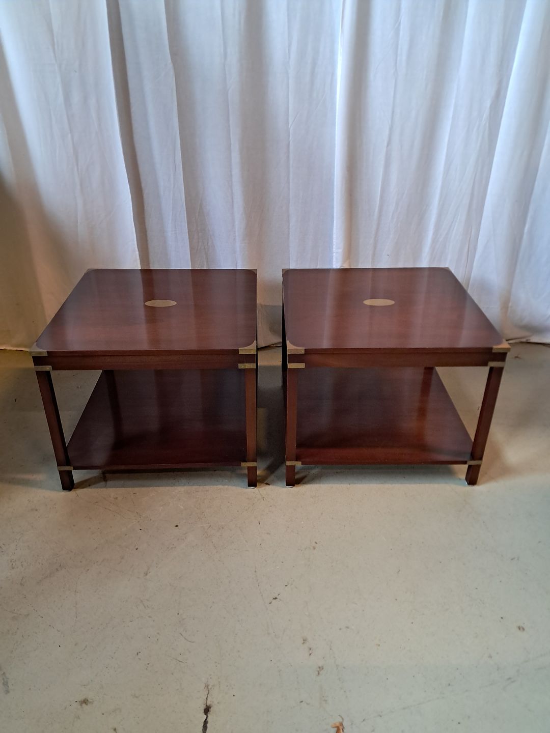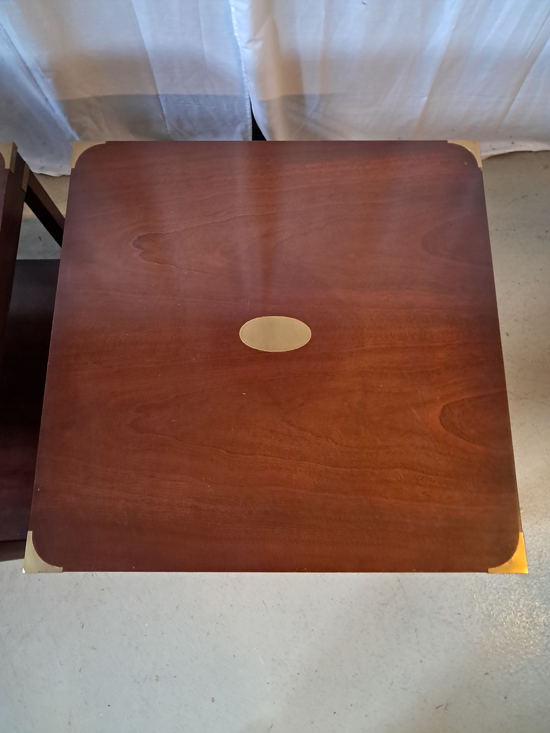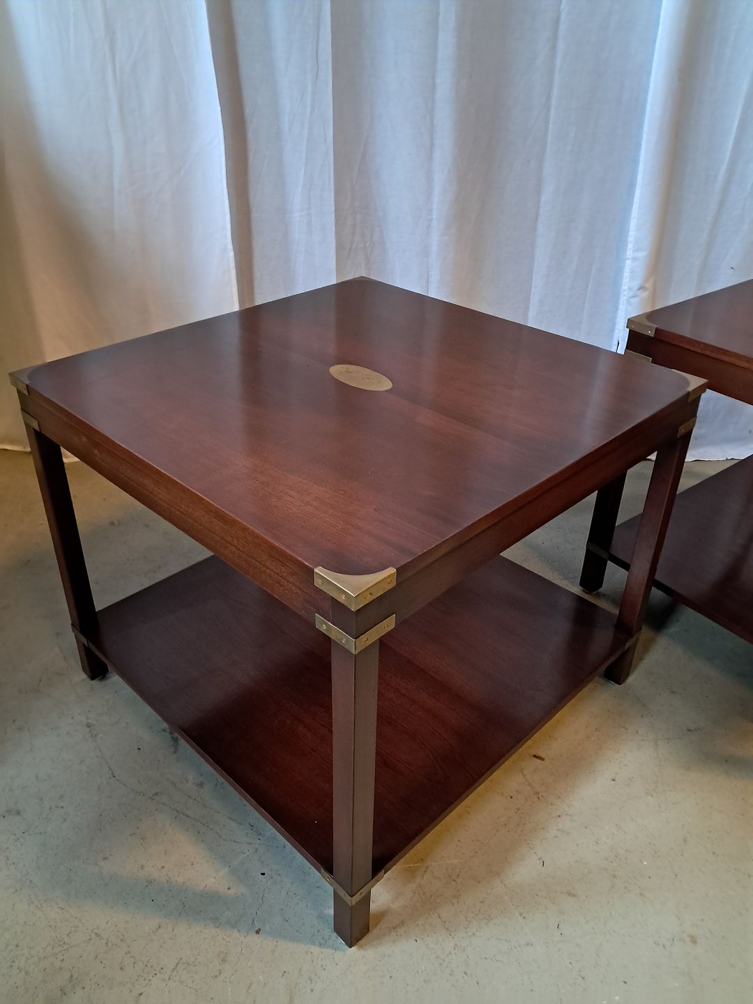2 Military borde i fineret mahogni, fra 1980erne.De har brugsspor.