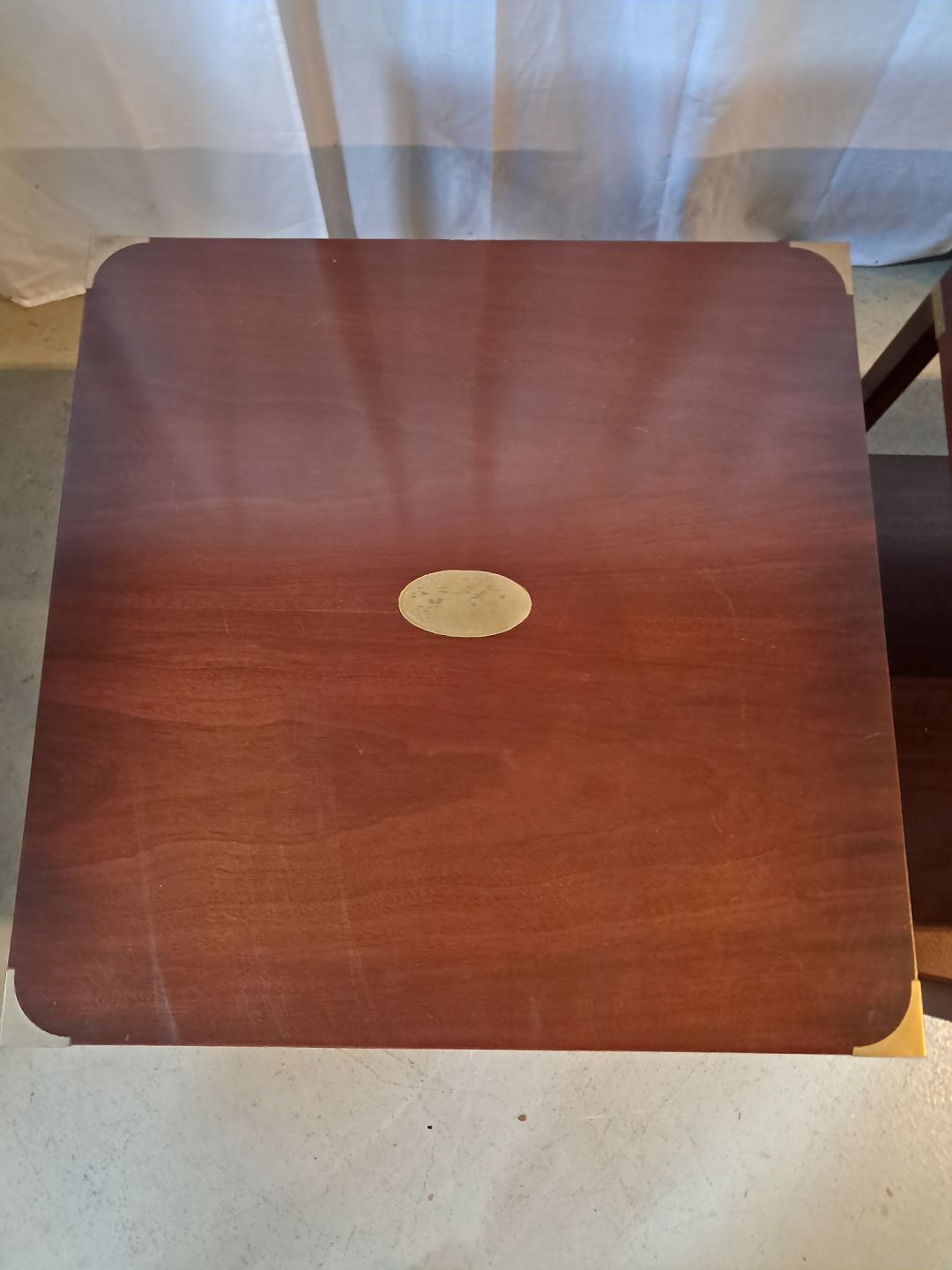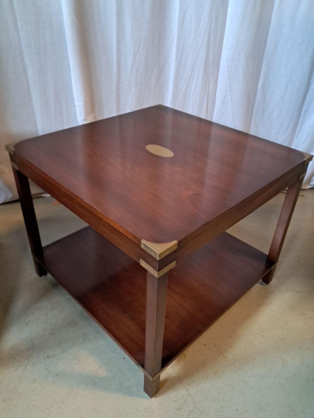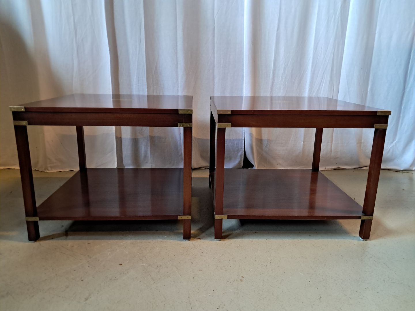 2 Military borde i fineret mahogni, fra 1980erne.De har brugsspor.