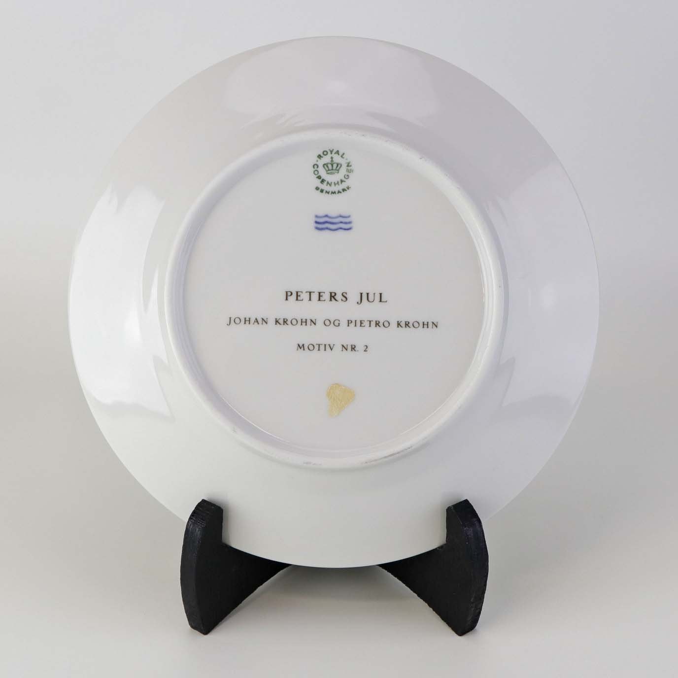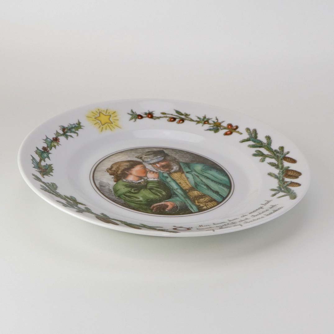 Flad desserttallerken i kongeligt porcelæn fra serien Peters Jul med motiv af mor og Anders. Nr. 2Formgiver Johan Krohn og Pietro Krohn