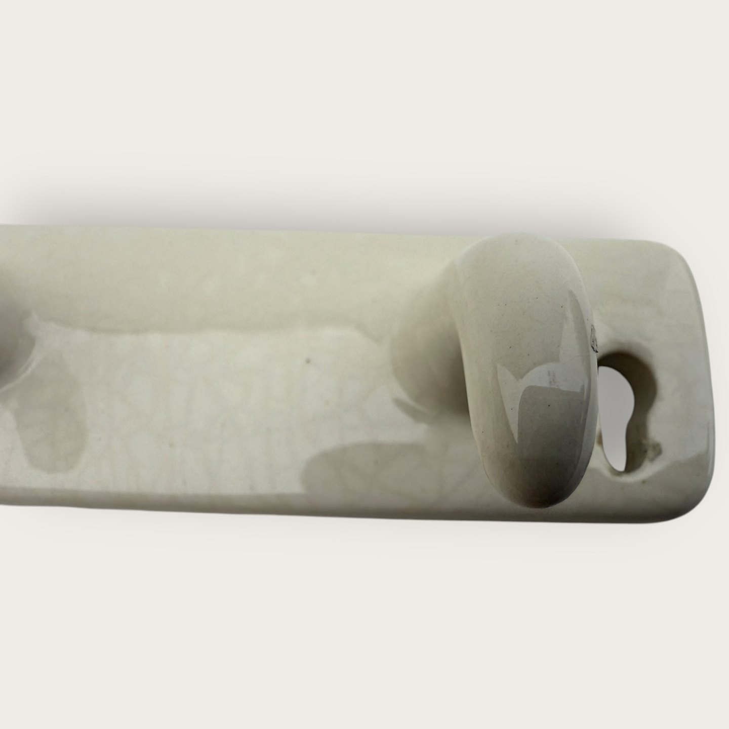 Aluminia, coat rack, 18x16cm, 3 hooks * With some patina at screw holes and small cracks under the glaze (see photo)Stock: 1