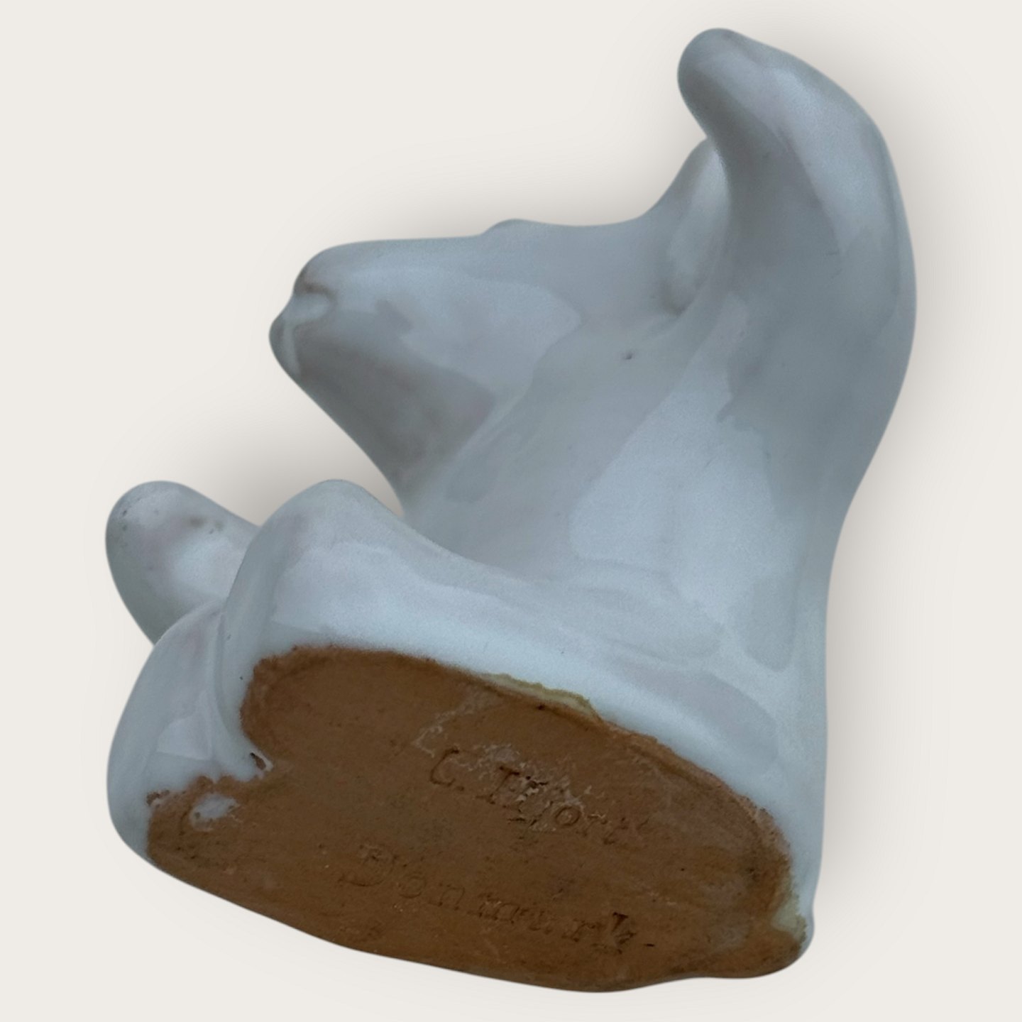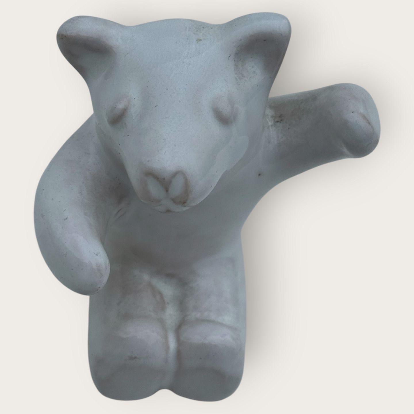 Bornholm pottery, Hjorth, Bear orchestra, Spectator, bear with white glaze, approx. 5.5x5.5cm *Good condition*Stock: 1