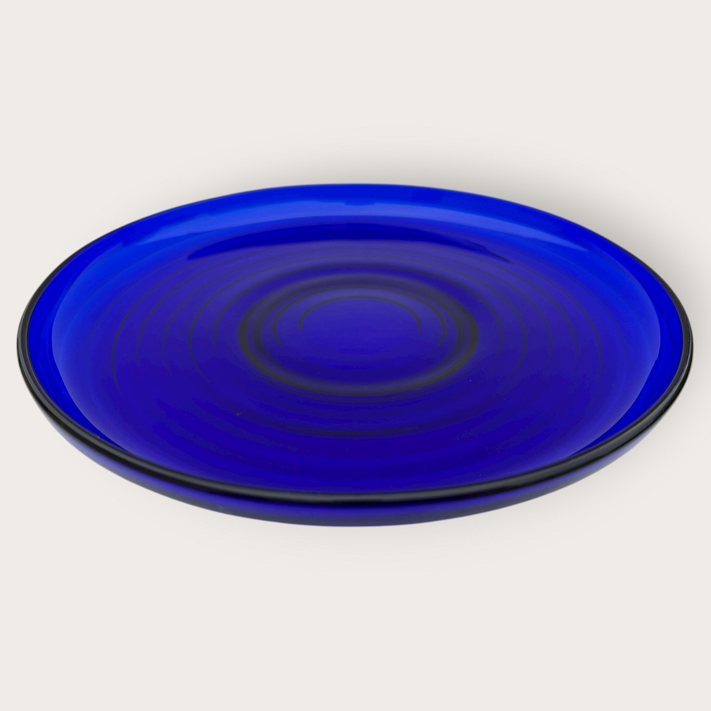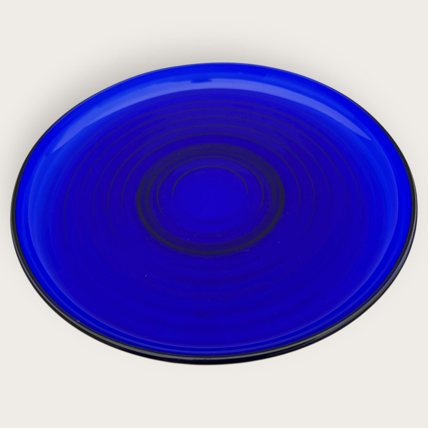 Holmegaard, Broksø, Pressed glass, Blue dish 28cm in diameter, design Jacob E. bang *Good condition*Stock: 1