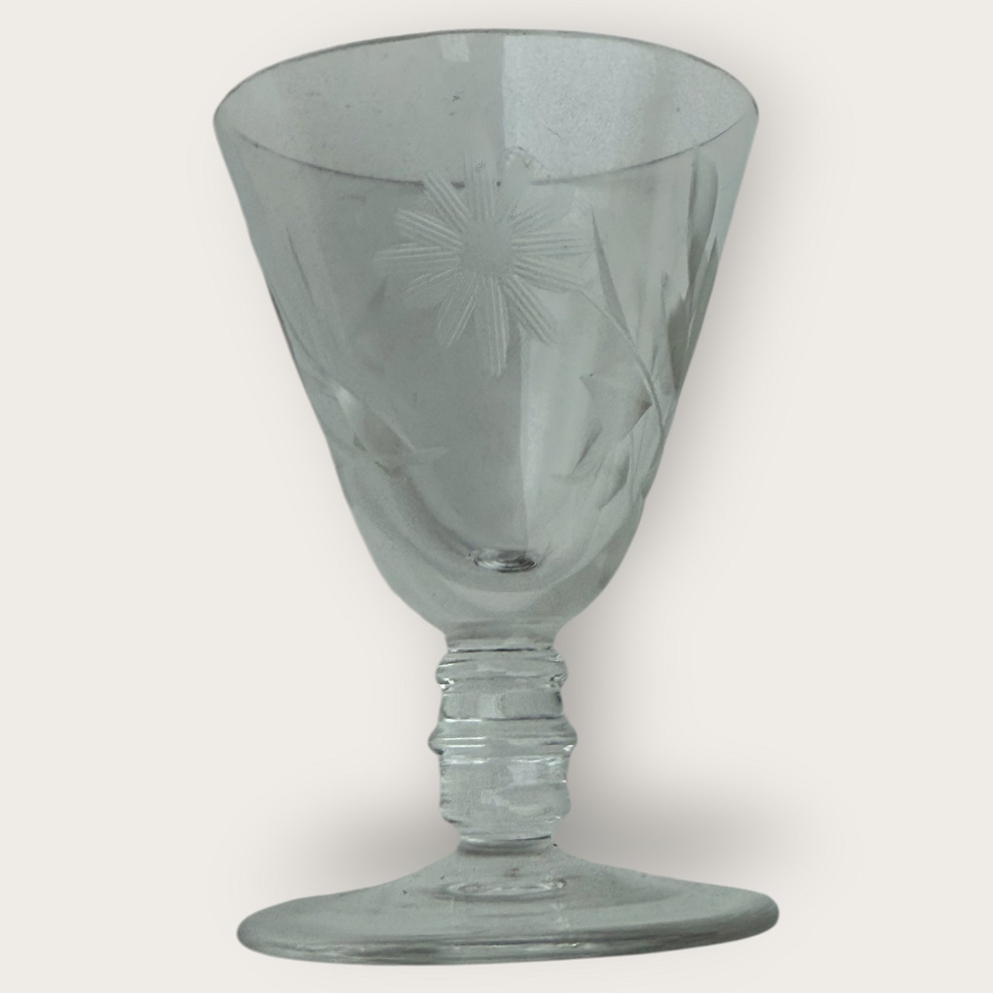 Schnapps glass with flower cuts, Height 6.5cm, diameter 4.5cm *nice condition*Stock: 5