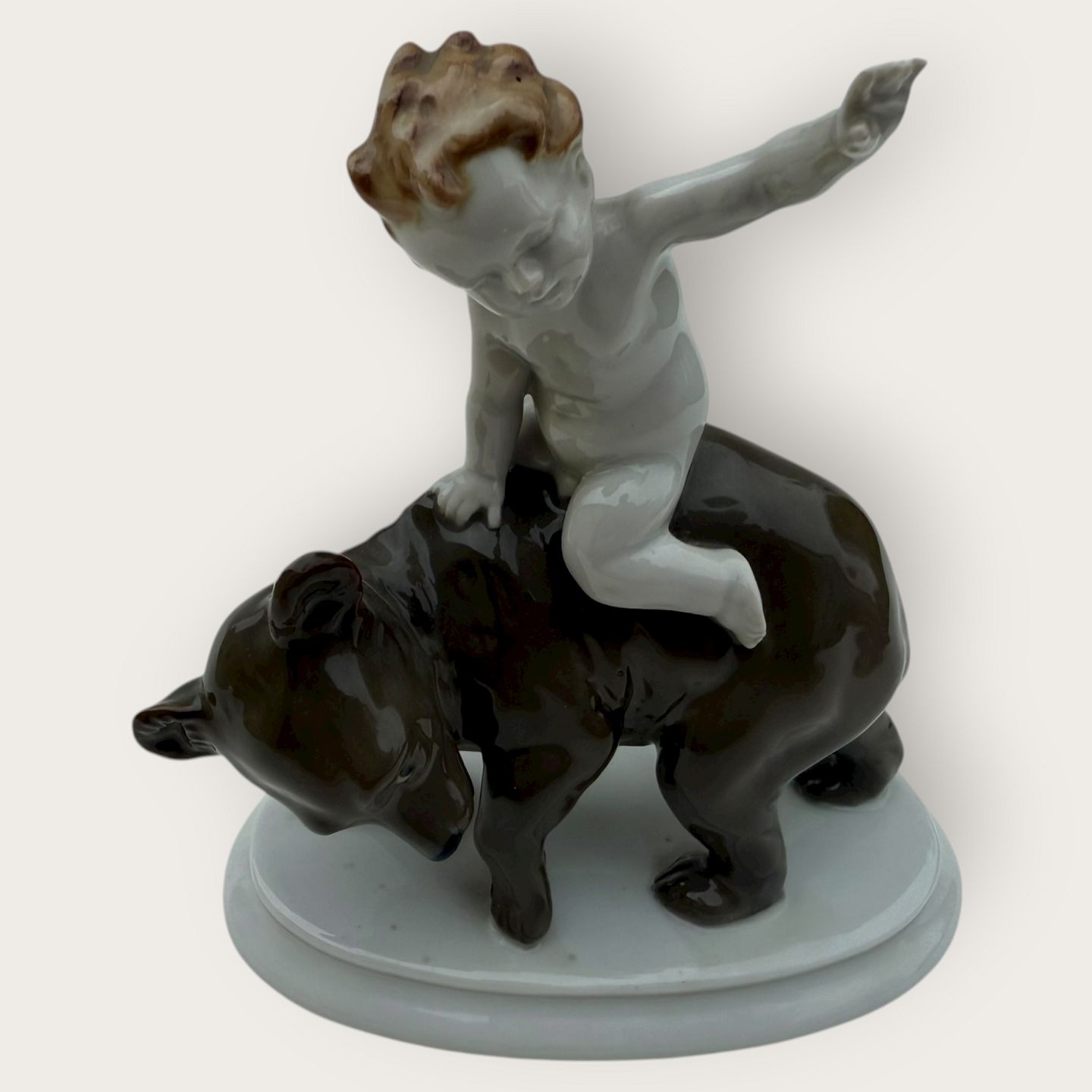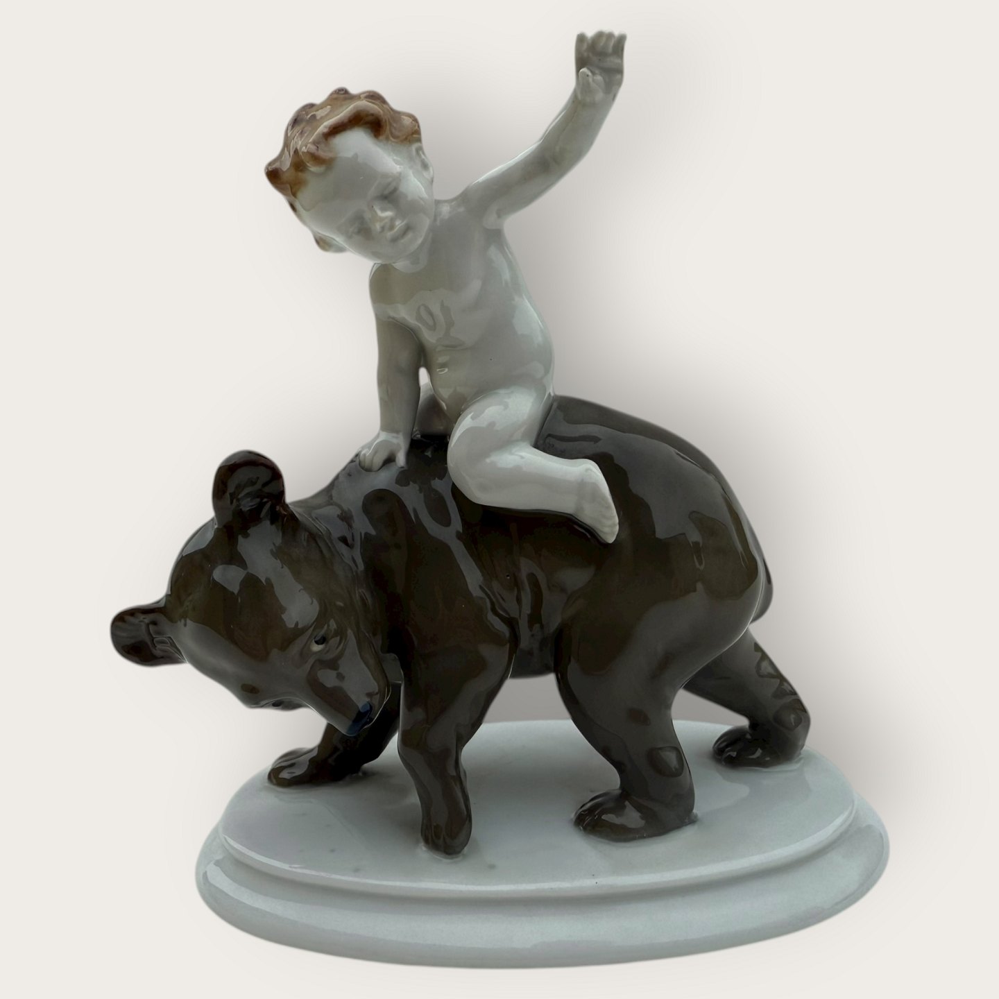 Metzler & Ortloff, Boy on bear, approx. 12x14.5cm *fine condition*Stock: 1