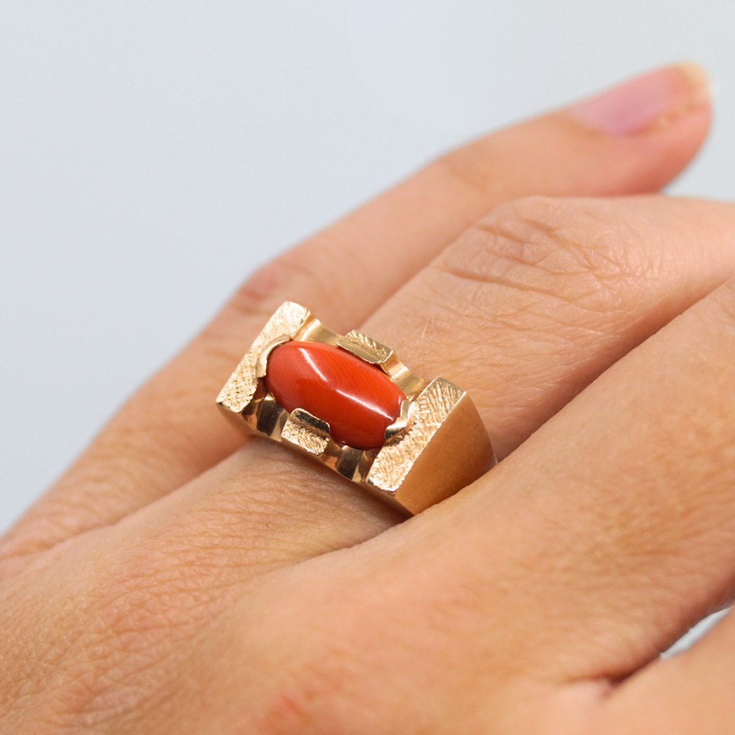 A ring in 14k gold. Set with a coral.Ring size 53.