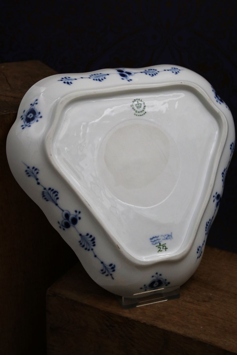 3-cornered cake plate / salad plate in Fluted Blue Plain from Royal Copenhagen. 22.5x22.5cm.Decoration number: 1/27. 1.sort. Is in fine condition.