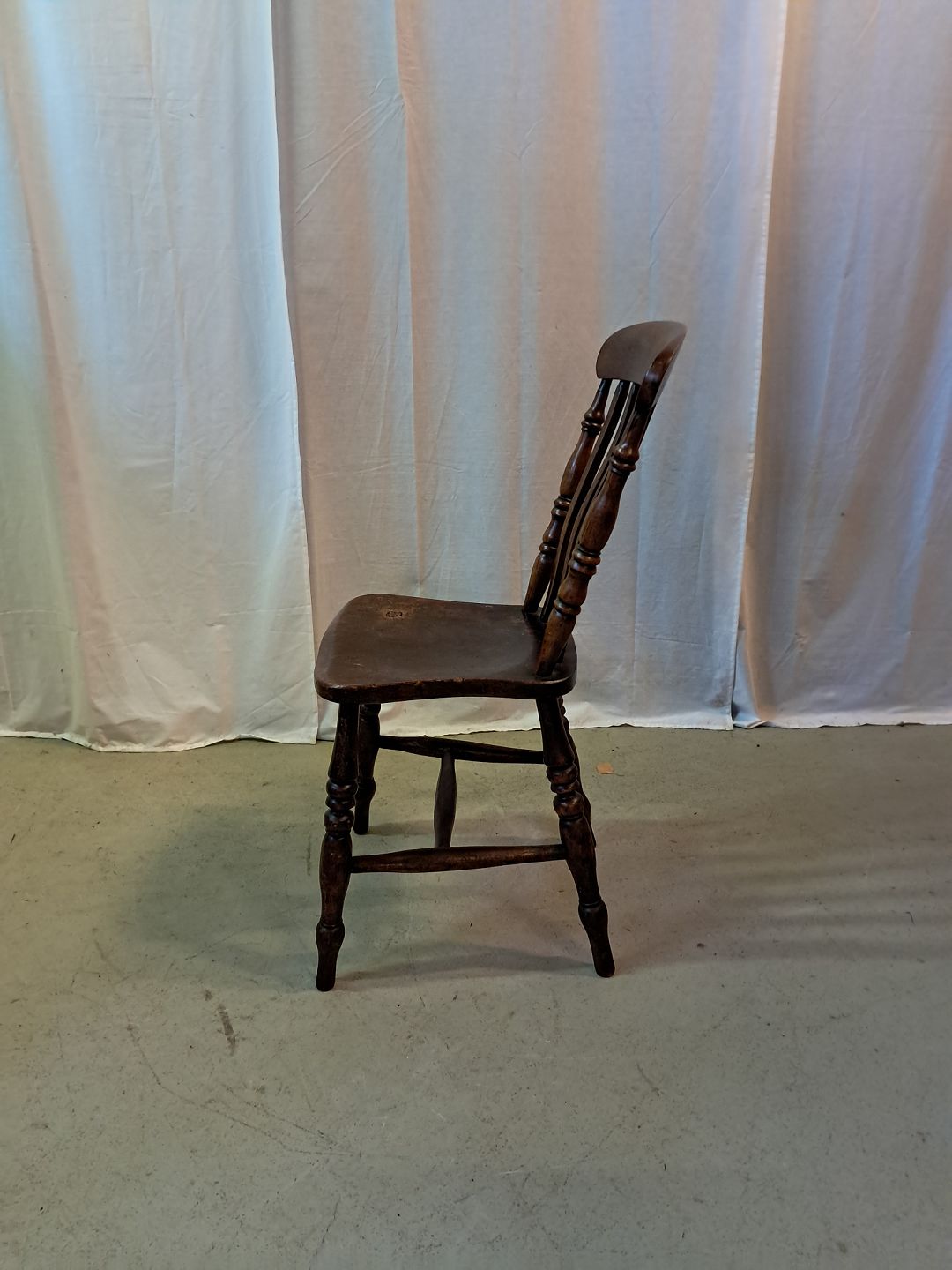 Stol i massivt egetræ, fra 1920erne.Den har brugsspor.