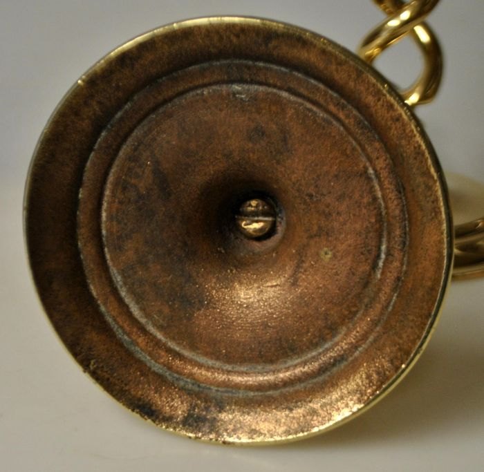 A pair of English "corkscrew" candlesticks in brass, 19th century. H.: 26 cm.New polished!