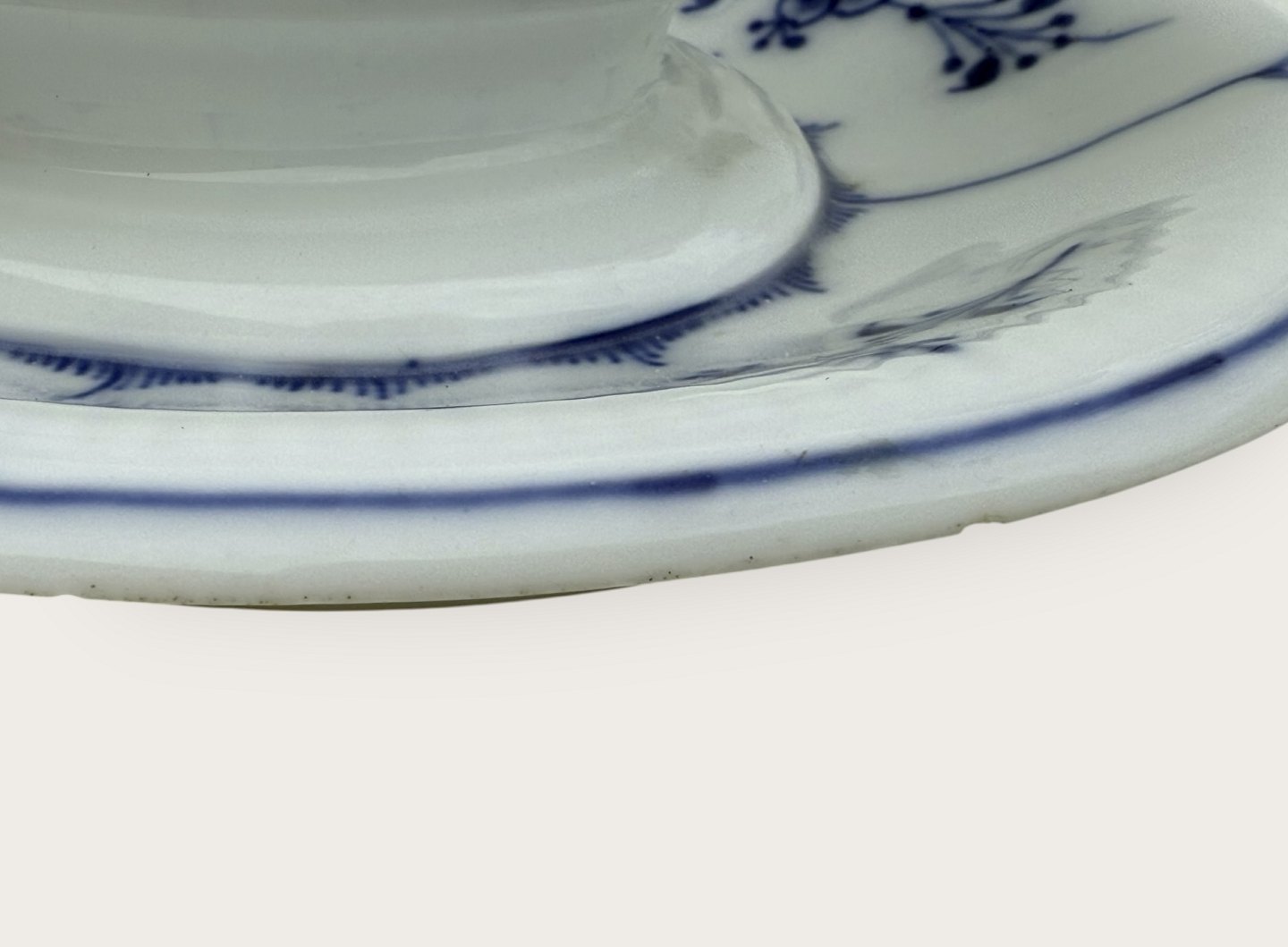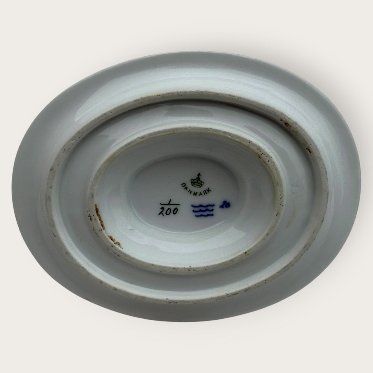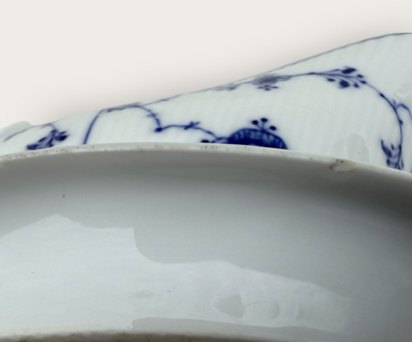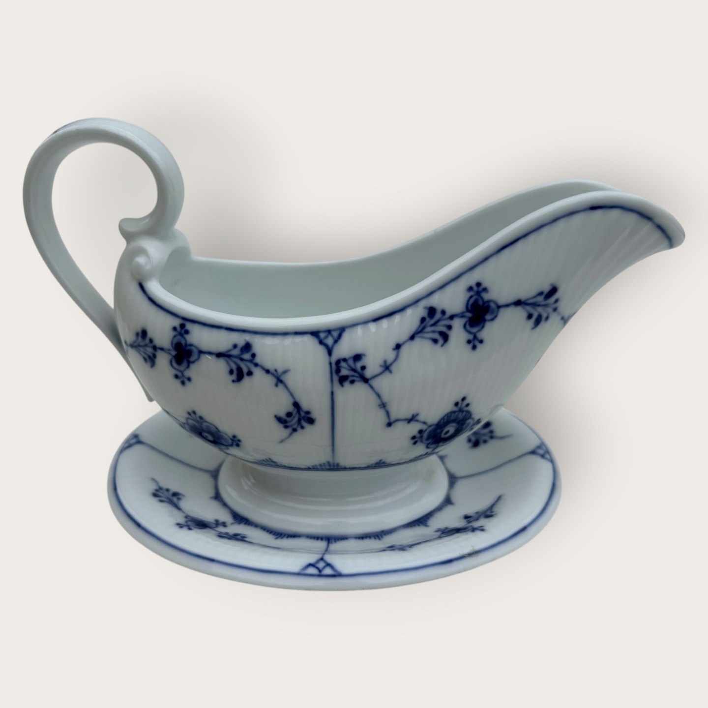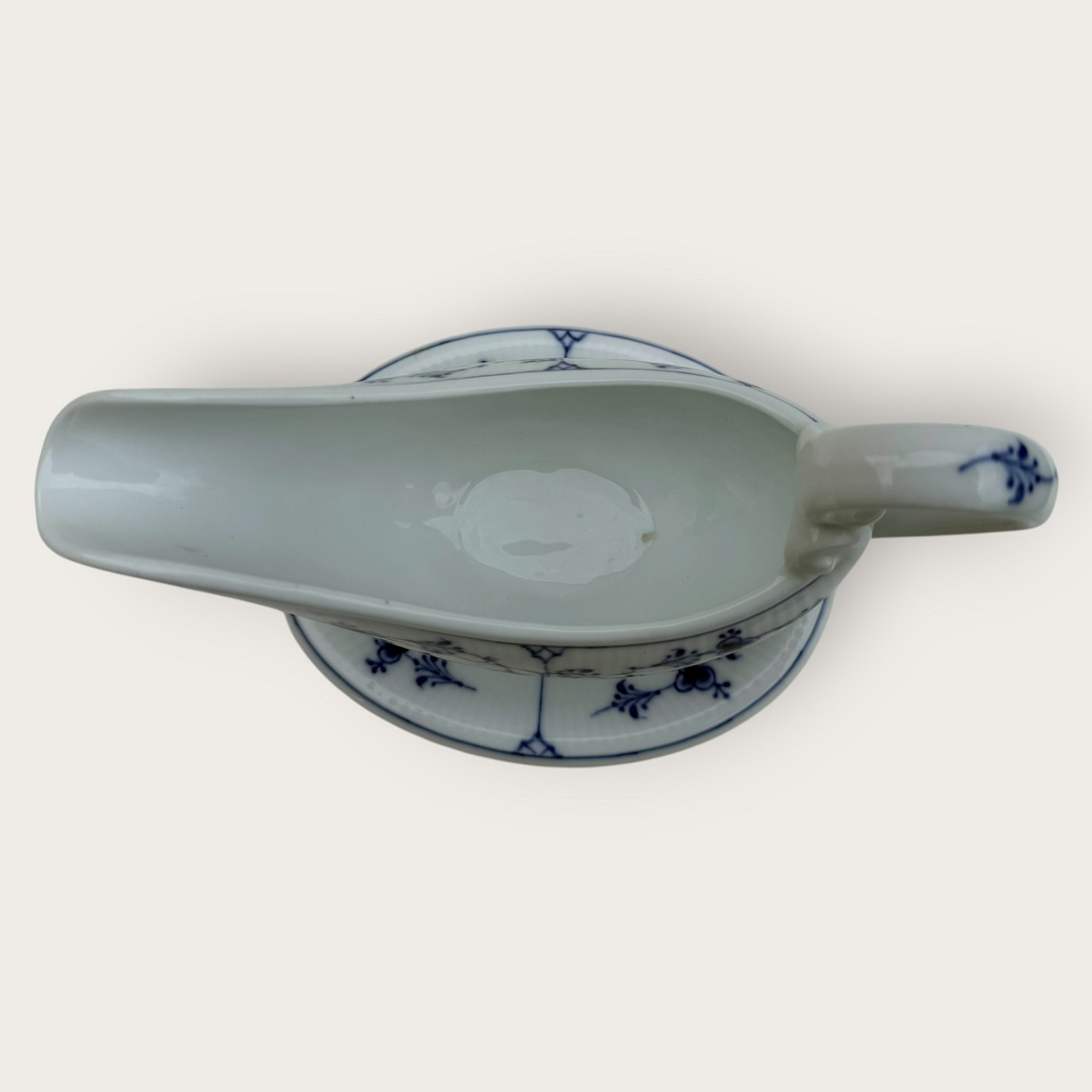 Royal Copenhagen, Blue Fluted Sauce Pot on Fixed Foot, # 1/200, Dimensions approx. HxWxD 10x20x13cm, Produced between 1894 and 1900 * With 2 very small chips below the edge of the foot (see last 2 photos) otherwise in good used conditionStock: 1