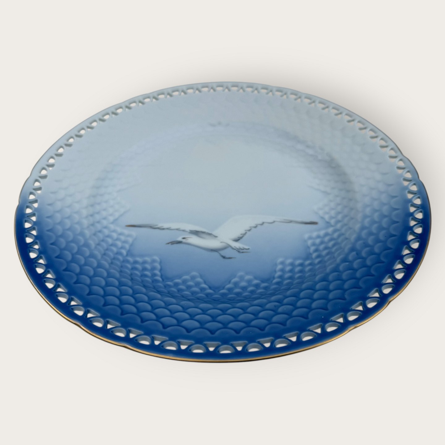 Bing & Grondahl, Seagull with gold, Dinner plate with openwork edge #325.5, 25cm in diameter, Design Fanny Garde *Perfect condition*Stock: 4