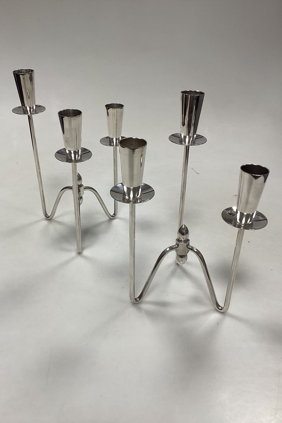 Pair of silver plated three-armed candlesticks by Johannes BergMeasures 20,2 cm / 7,95 inch