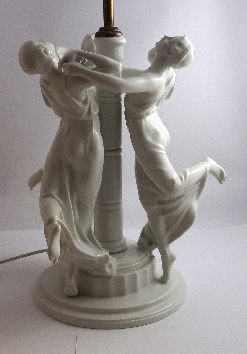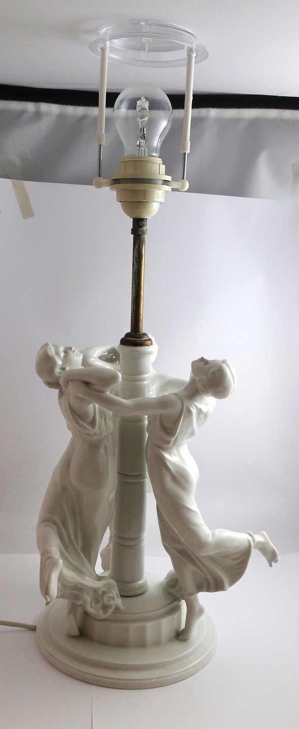 Rosenthal. Porcelain lamp with dancing girls. Porcelain height 32.5 cm, and the lamp is 60 cm total. Dealer