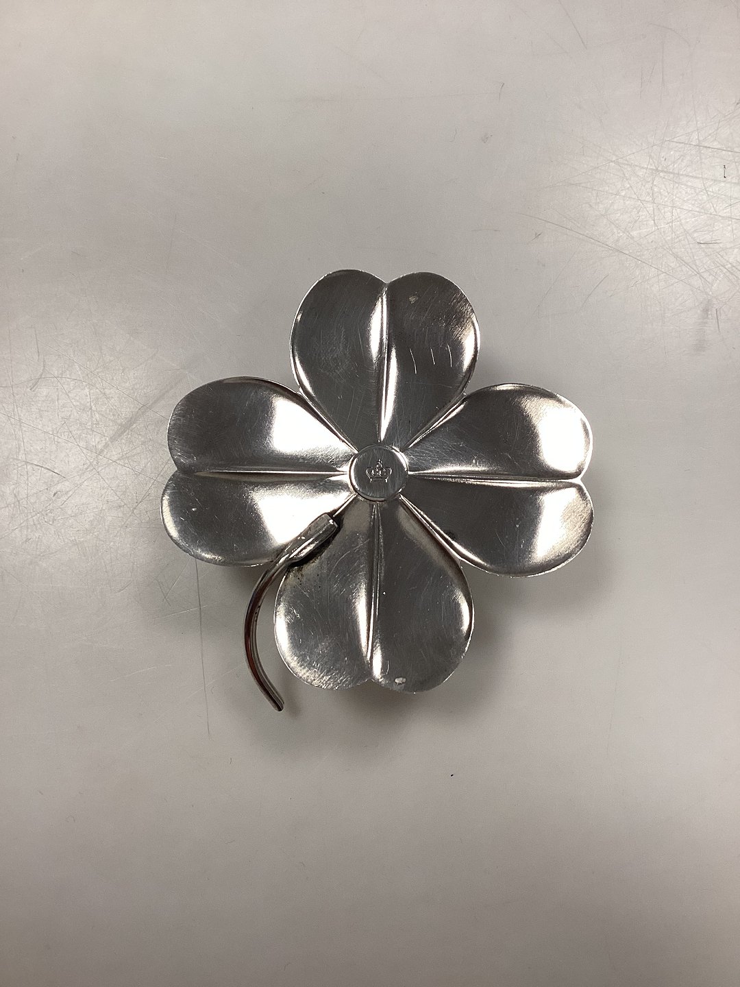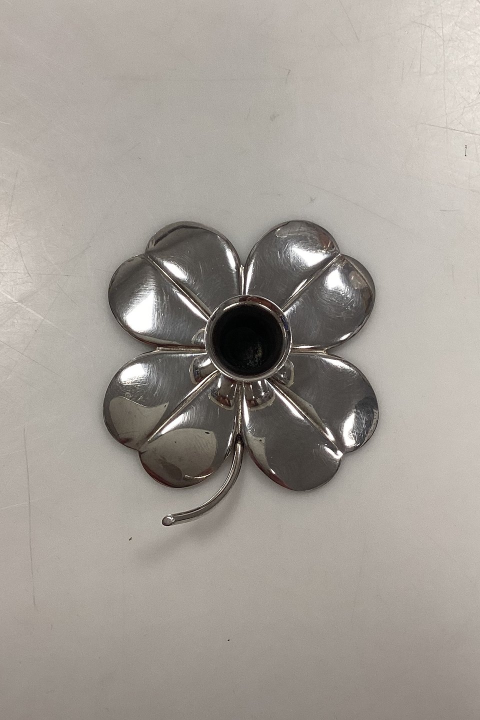 Pair of small silver plated candle holders from Kronen SølvvarefabrikShaped like four-leaf clovers.