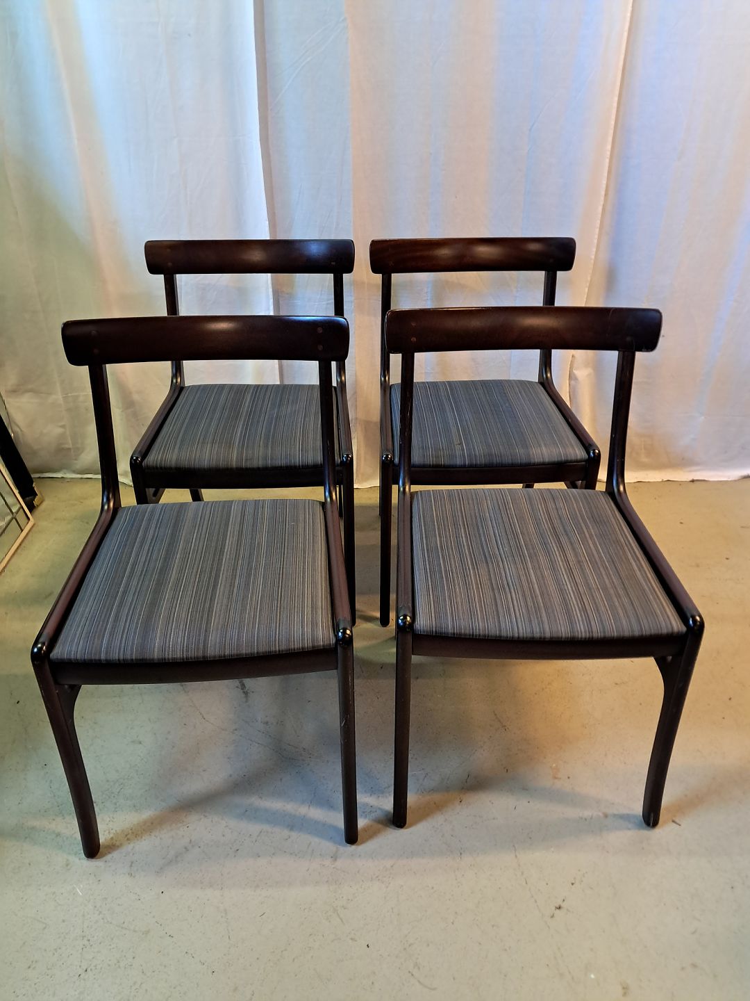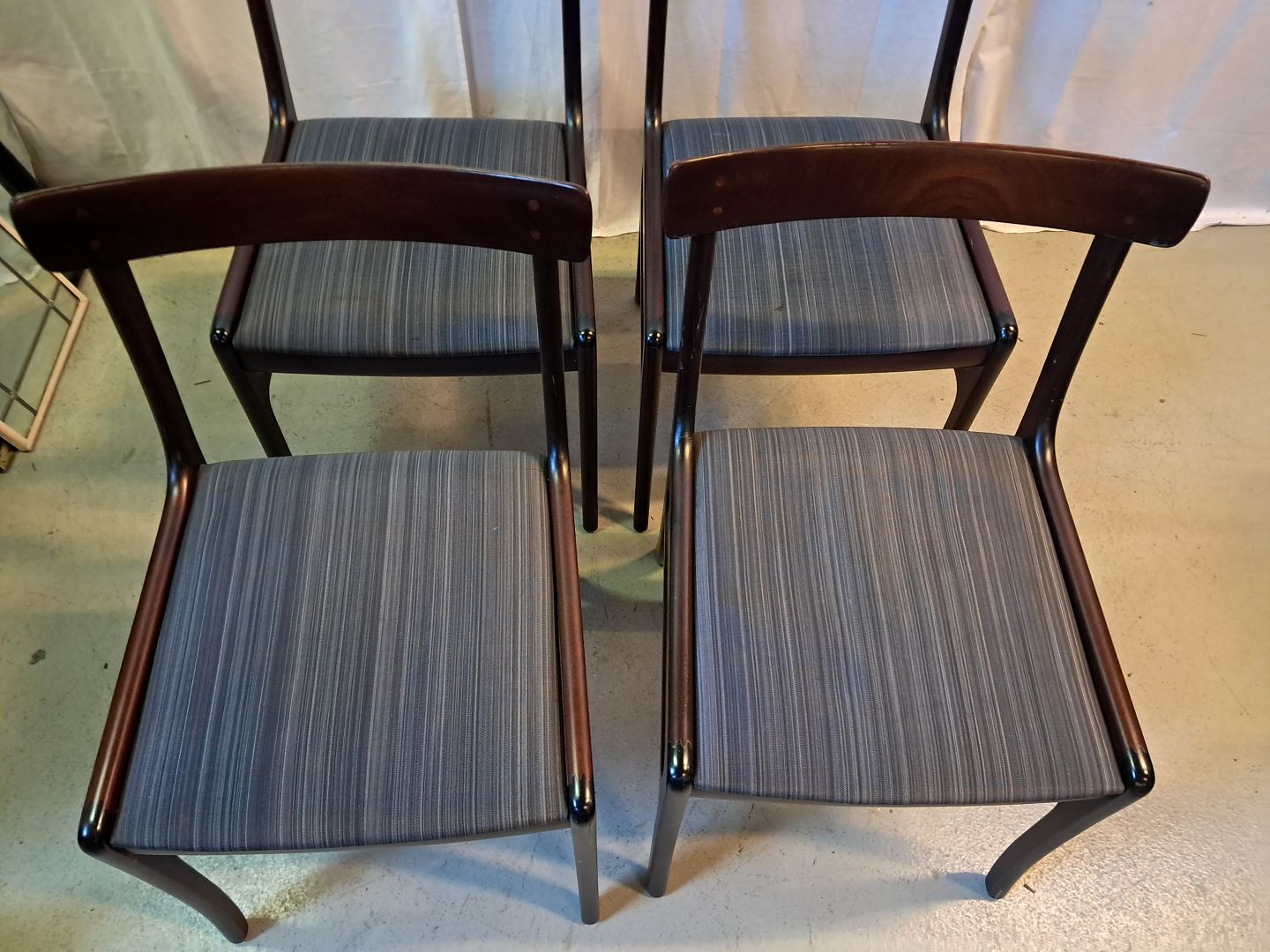4 Ole Wanscher stole i mahogni, fra 1980erne.De har brugsspor og laken bobler lidt op på 2 af stolene. (se foto)