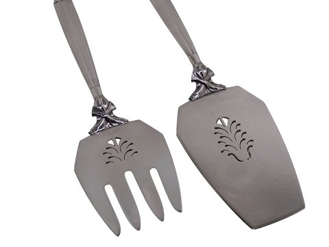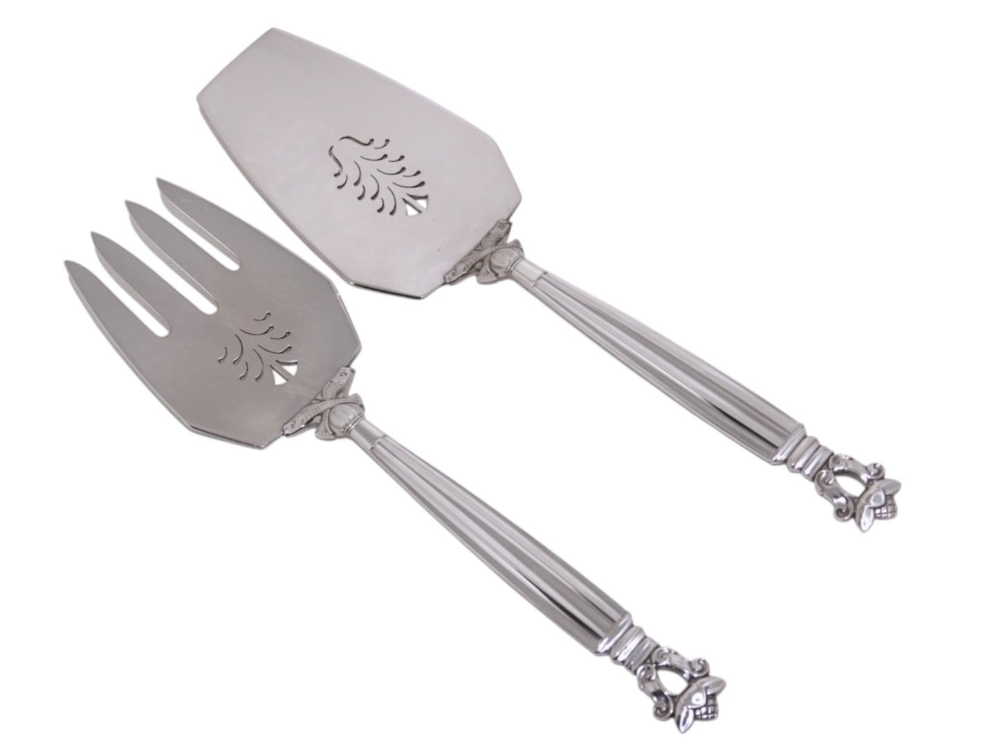 Georg Jensen Acorn silver, large fish serving set.Produced after 1945.