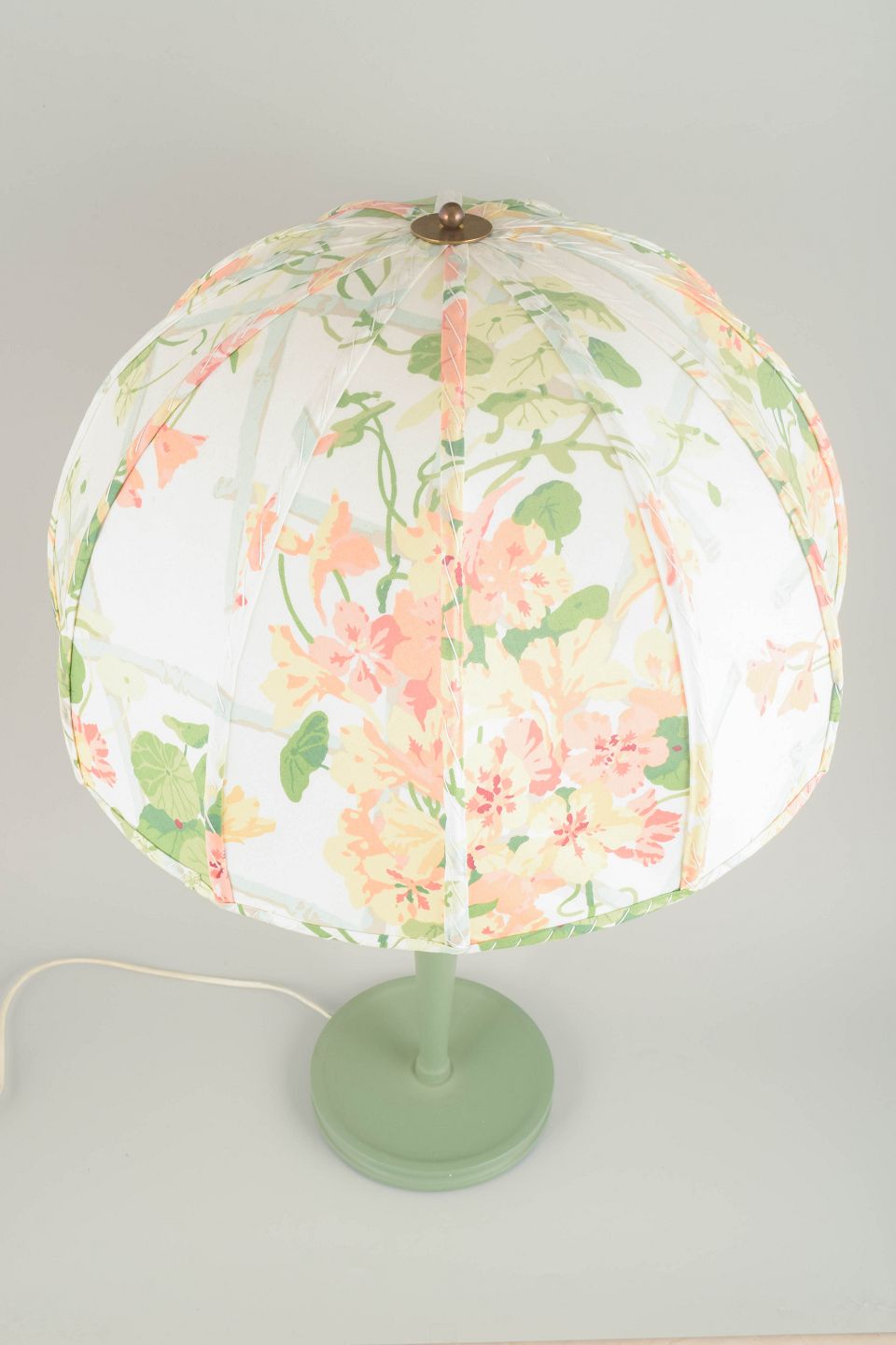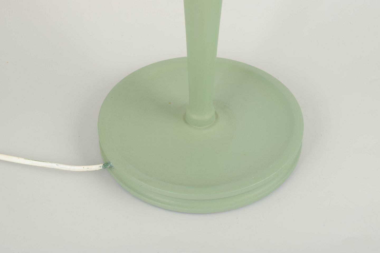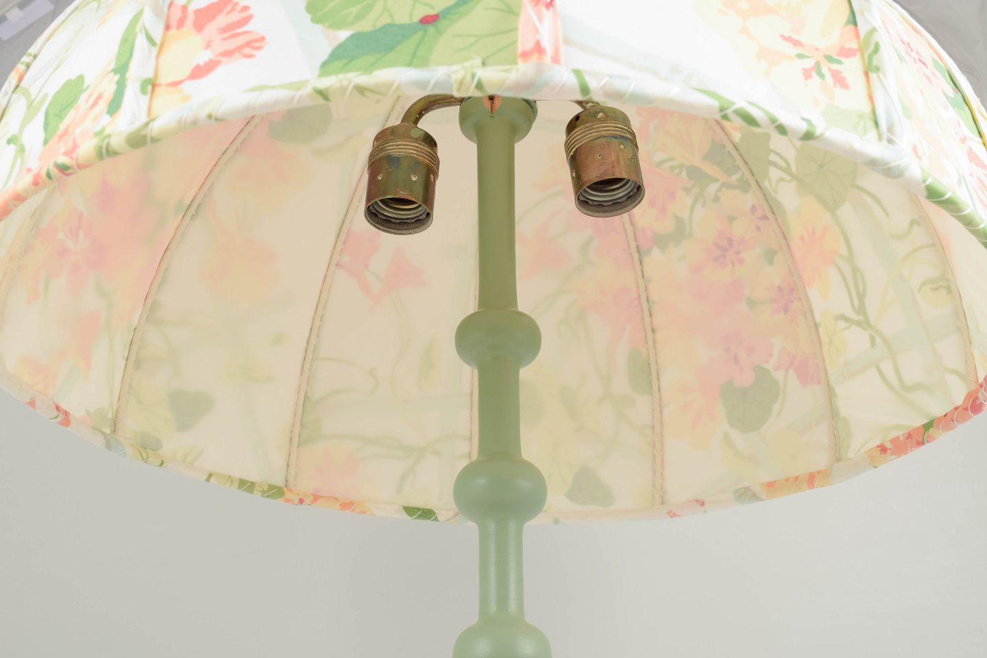 An exceptionally refined and characteristic table lamp designed by Josef Frank for Svenskt Tenn. The lamp features a beautifully domed shade upholstered in a delicate floral fabric in soft pastel tones — a testament to Frank’s masterful use of colour and nature-inspired motifs. The turned wooden base in pale green lacquer adds balance and grace, uniting craftsmanship with organic modernism. A superb and emblematic piece of Scandinavian mid-century design at its most lyrical.