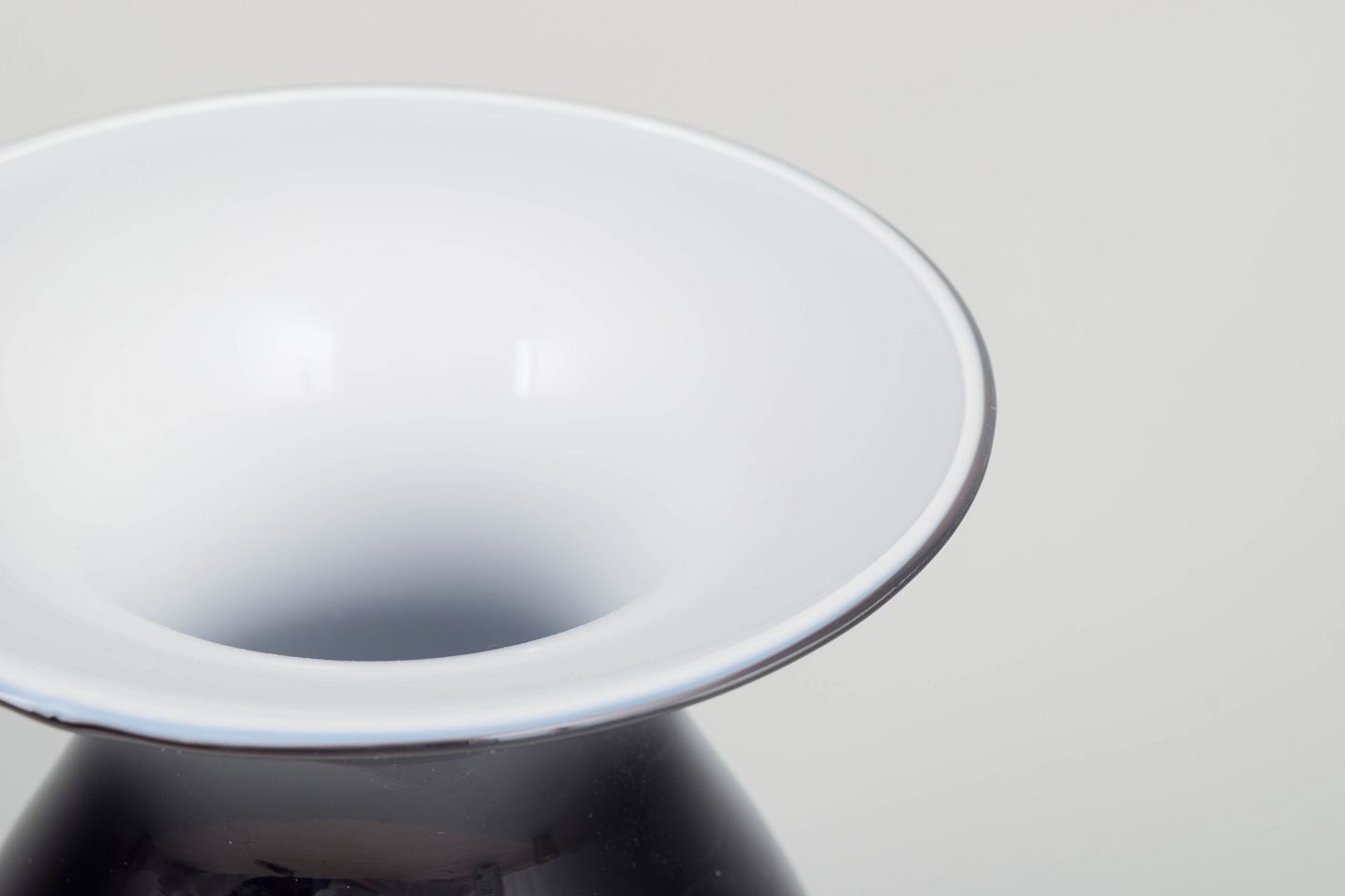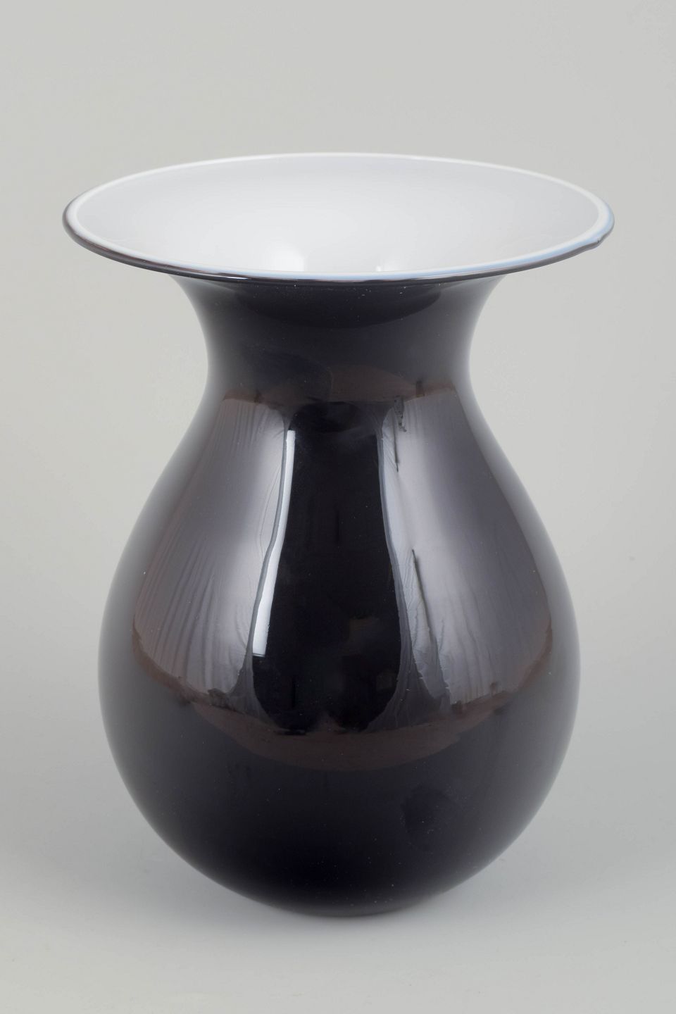 Elegant hand-blown vase in black and white glass from the Shape series, designed by Peter Svarrer for Holmegaard. Classic form with soft curved silhouette and wide opening. Original box included.