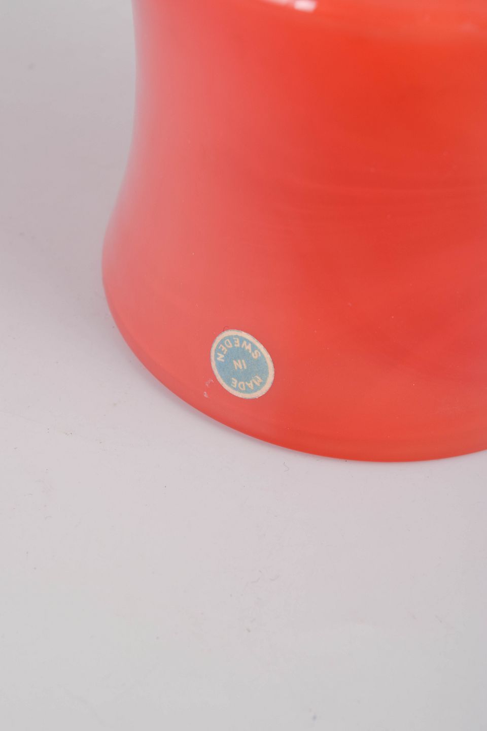 Mouth-blown vase in vivid orange glass with an elegant cylindrical body and flared neck. A fine example of 1970s Swedish glass design, combining strong colour and sculptural form in a distinctive period expression.