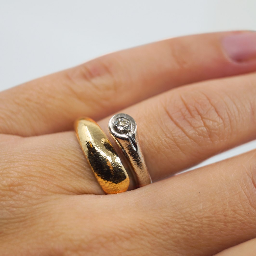 Ole Lynggaard gold jewelry.Ole Lynggaard ring of 14k gold and white gold. Set with a diamond, 0.15 ct.