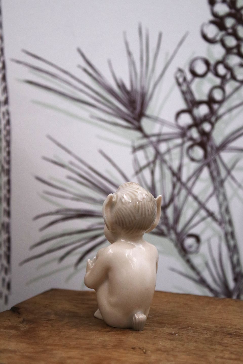 Rare porcelain figure of Faun / Pan from Royal Copenhagen,designed by Arno Malinowski (1899-1976) silversmith and designer, among others at Georg Jensen.
