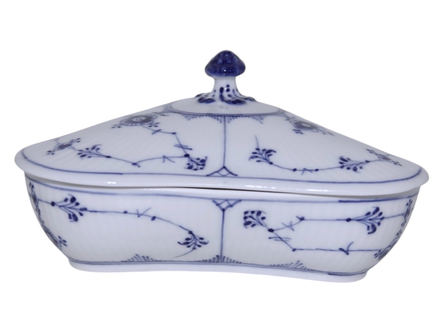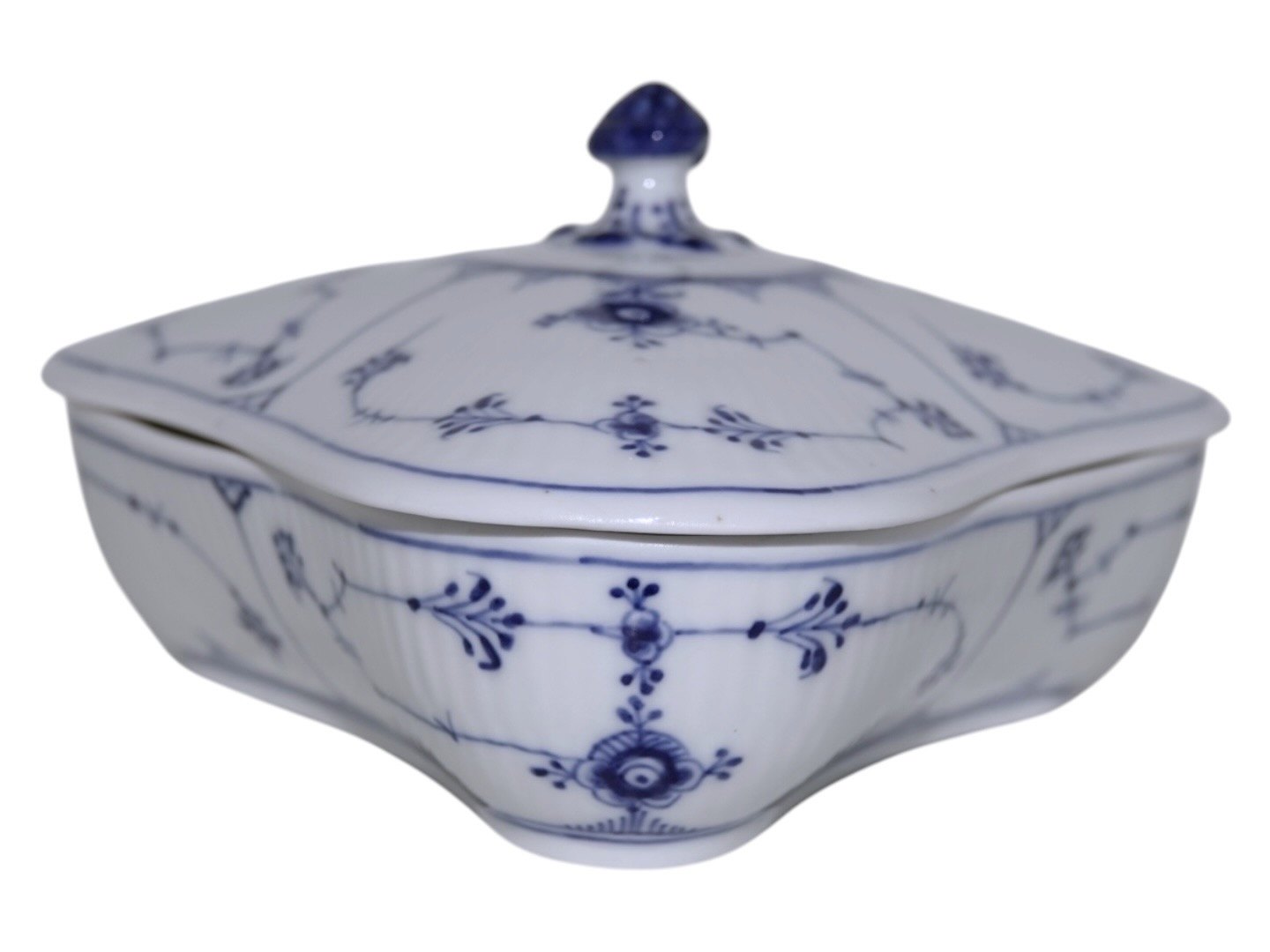 Royal Copenhagen Blue Fluted Plain, rare oblong sugar bowl.The factory mark tells, that this was produced between 1898 and 1923.