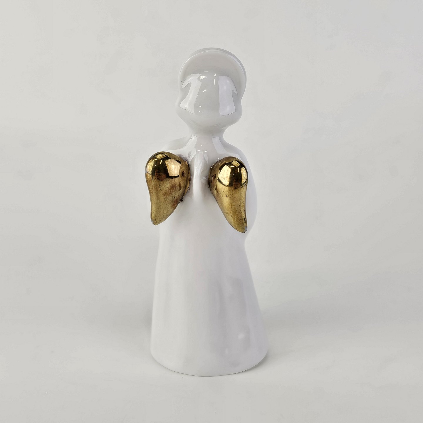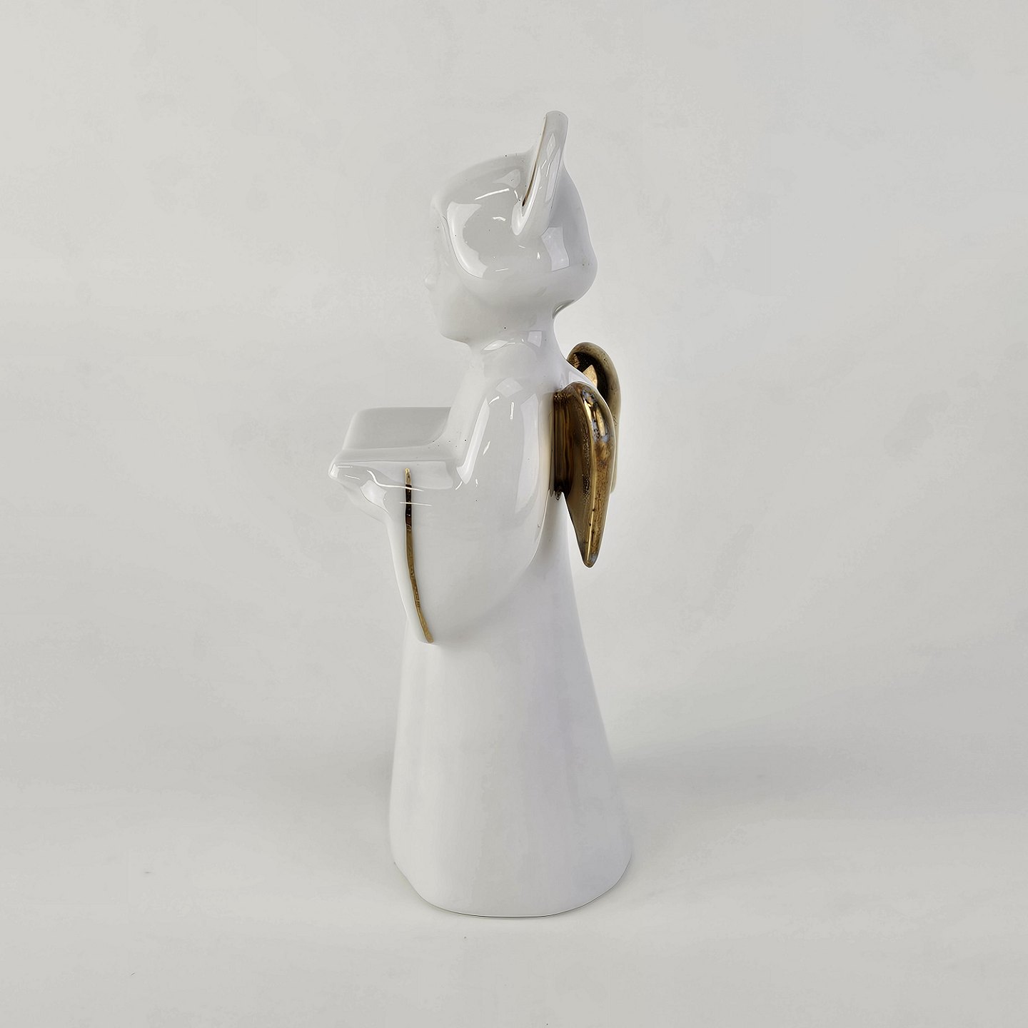 Figur med motiv af en engel med en sandbog. Figuren er i hvidt porcelæn med forgyldte vinger og detaljer i 24 karat guld. 3 af 12 i serien Heavenly Music med titlen Songbook