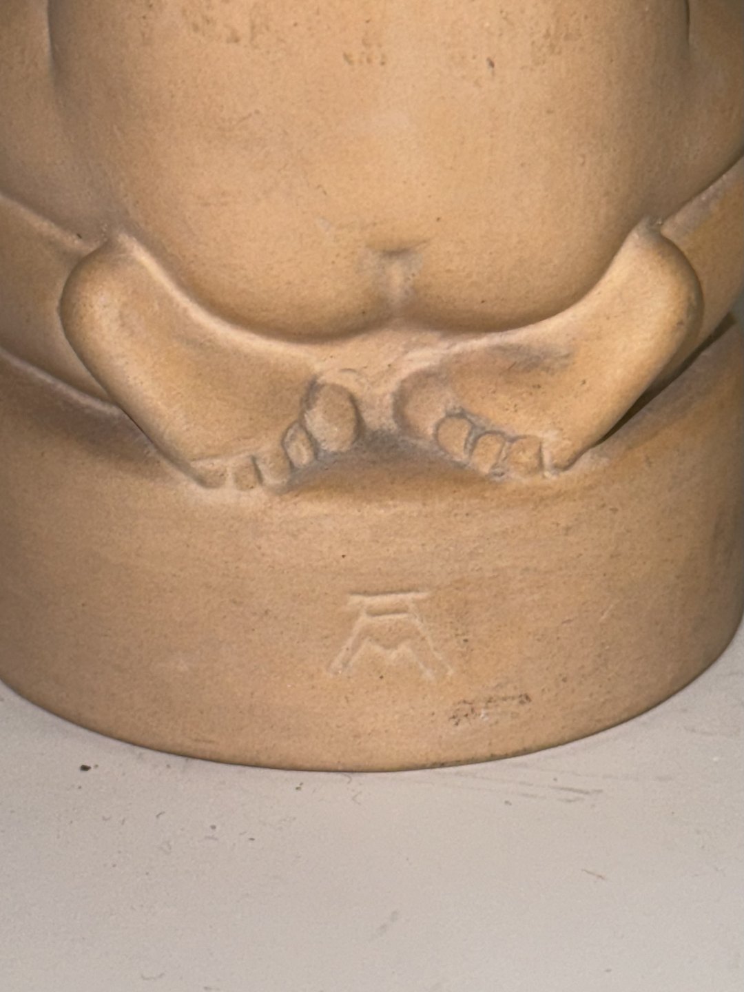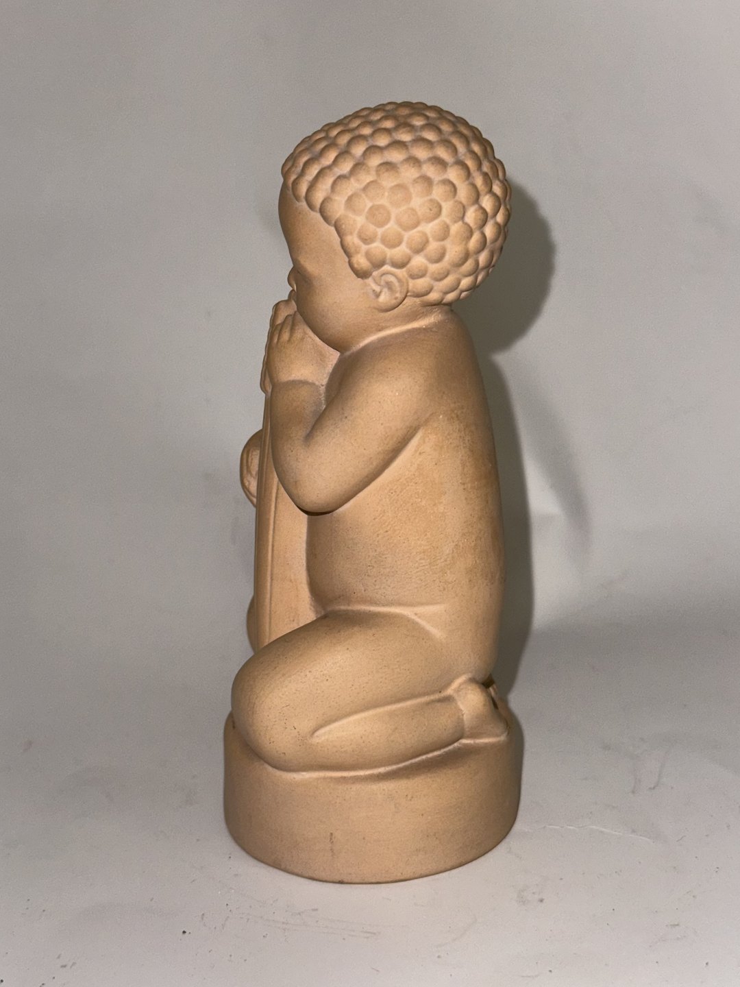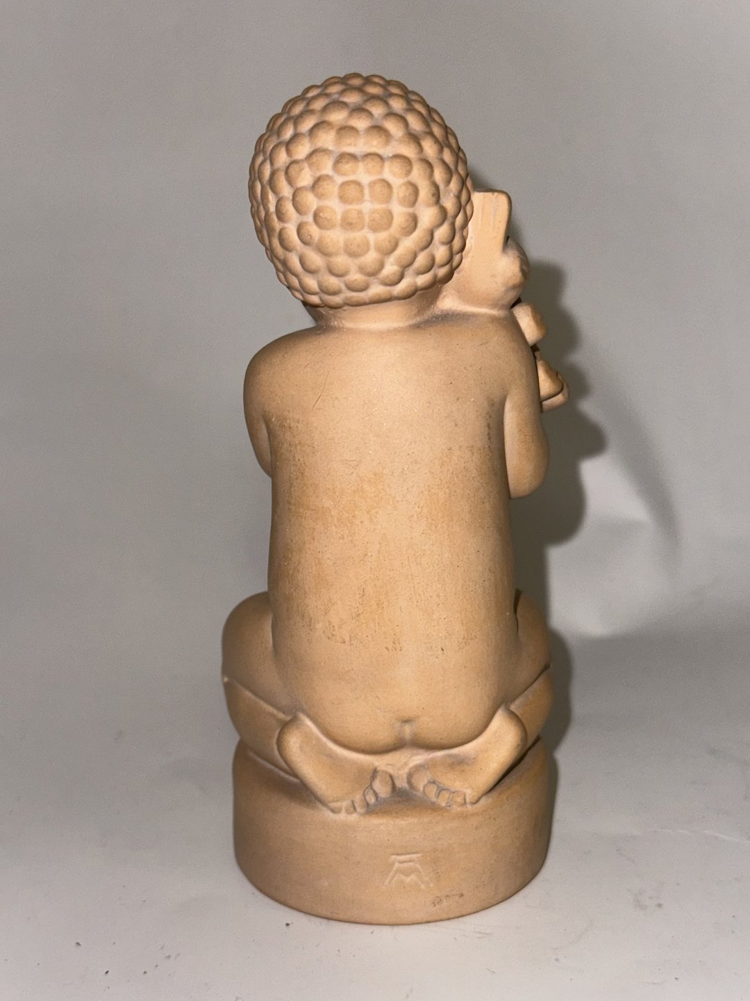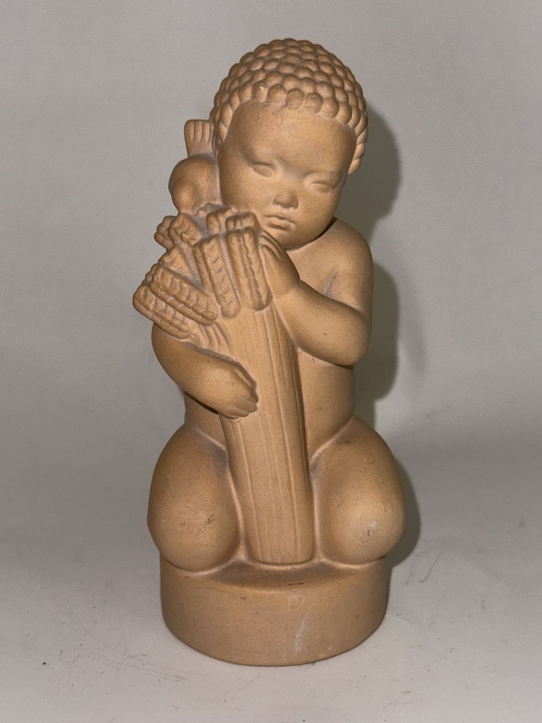 Figurine of a boy in ceramic. Made by Arno Malinowski for Peter Ipsen's Enke. Factory mark on the bottom. Artist's monogram on the back of the base. In perfect condition. H. 12.7 cm Dealer