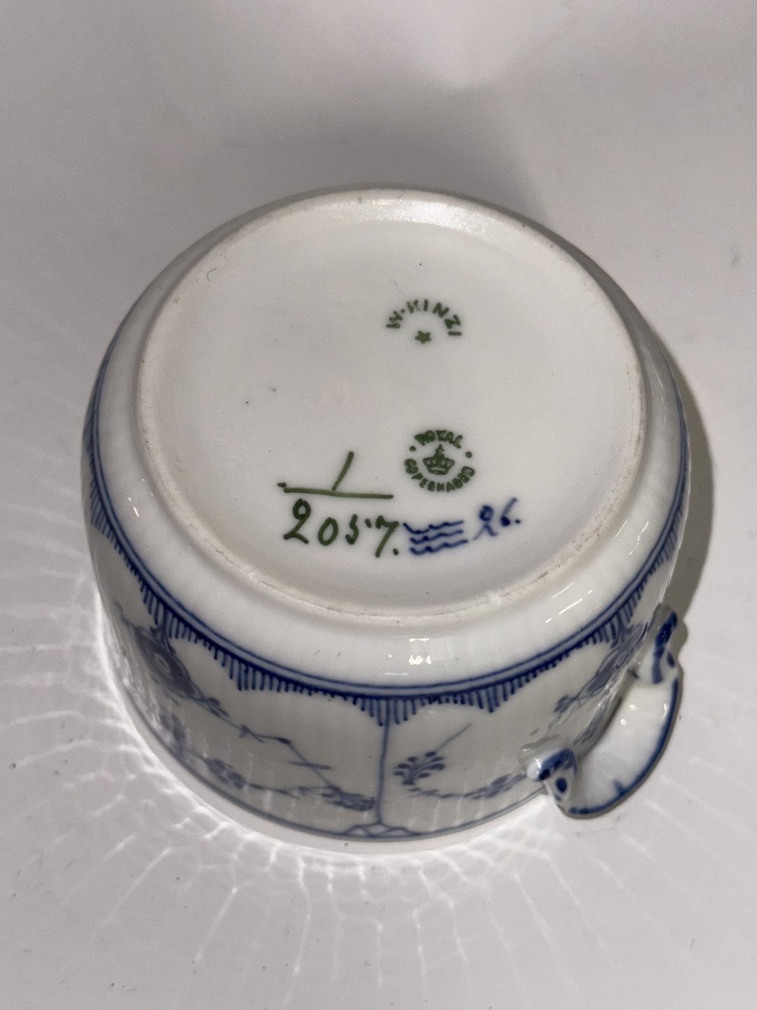 Extremely rare sugar bowl from Royal Copenhagen with blue fluted decoration. Made between 1900-23. In good condition. Factory first quality. Small factory logo/name stamped on the bottom. Model number 1/2057. Dimensions: H. 6.2 cm Ø. 9 cm Dealer