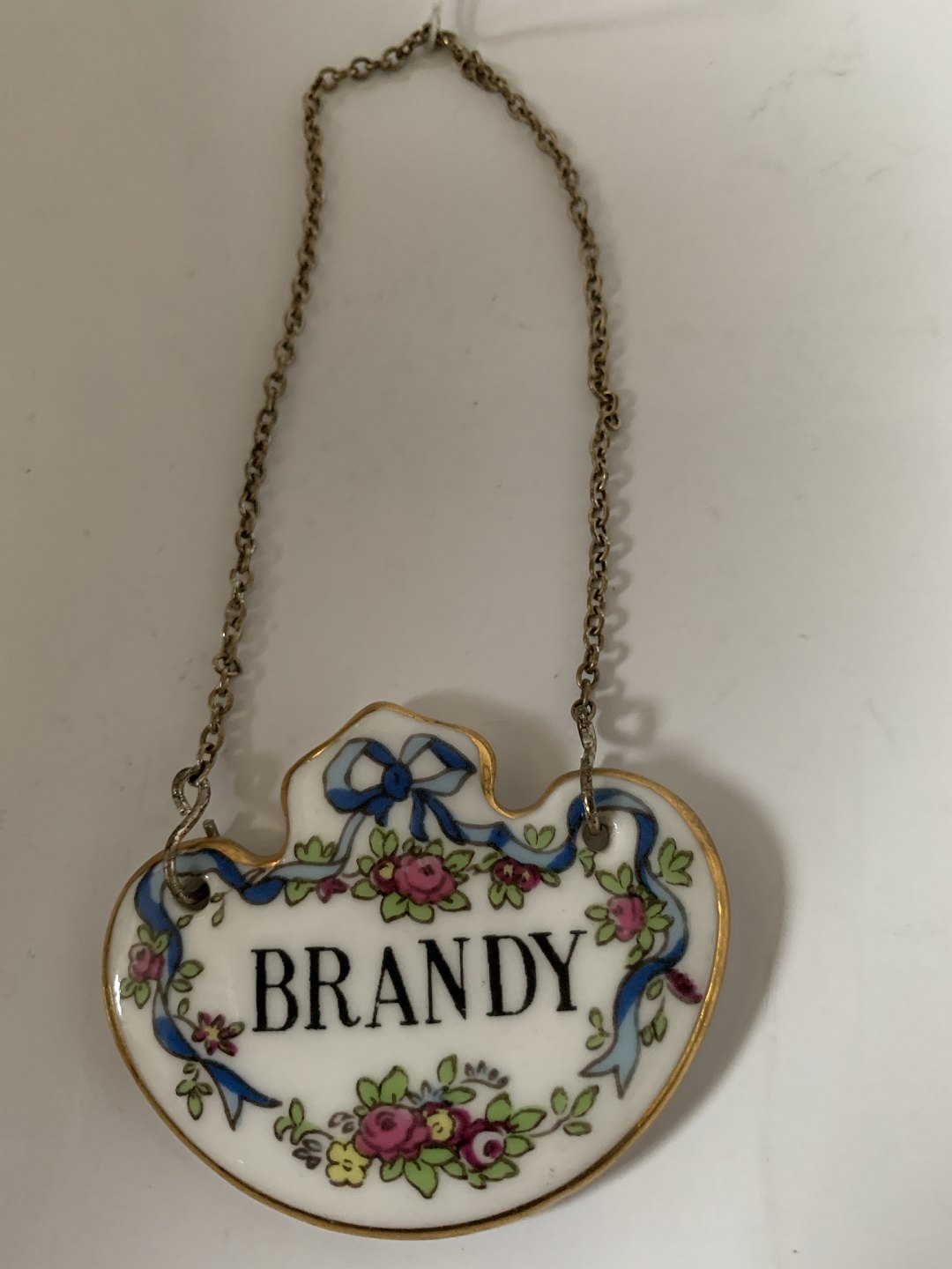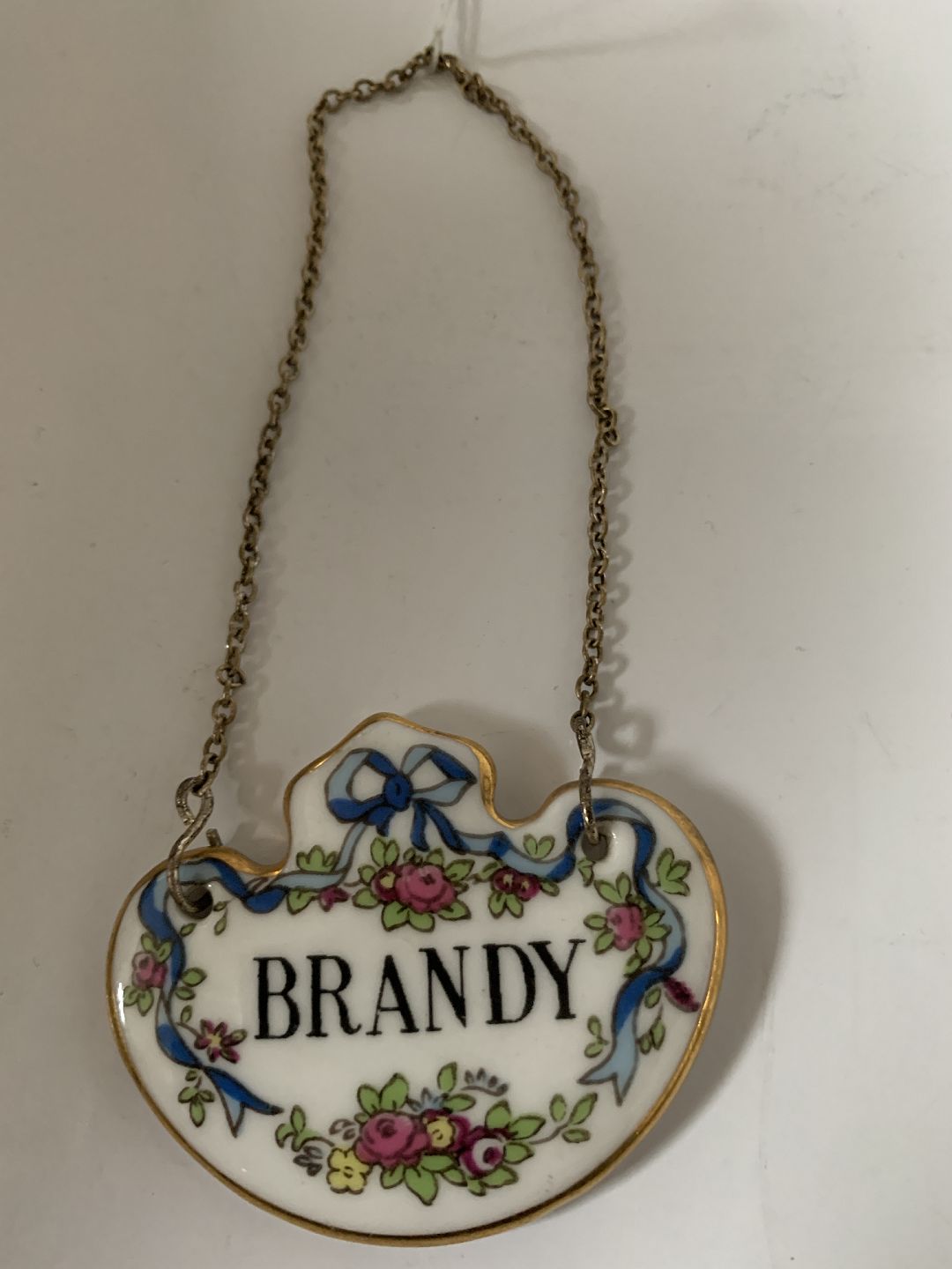 Bottle / Decanter Brandy sign with chainStamped Stafford Shine England