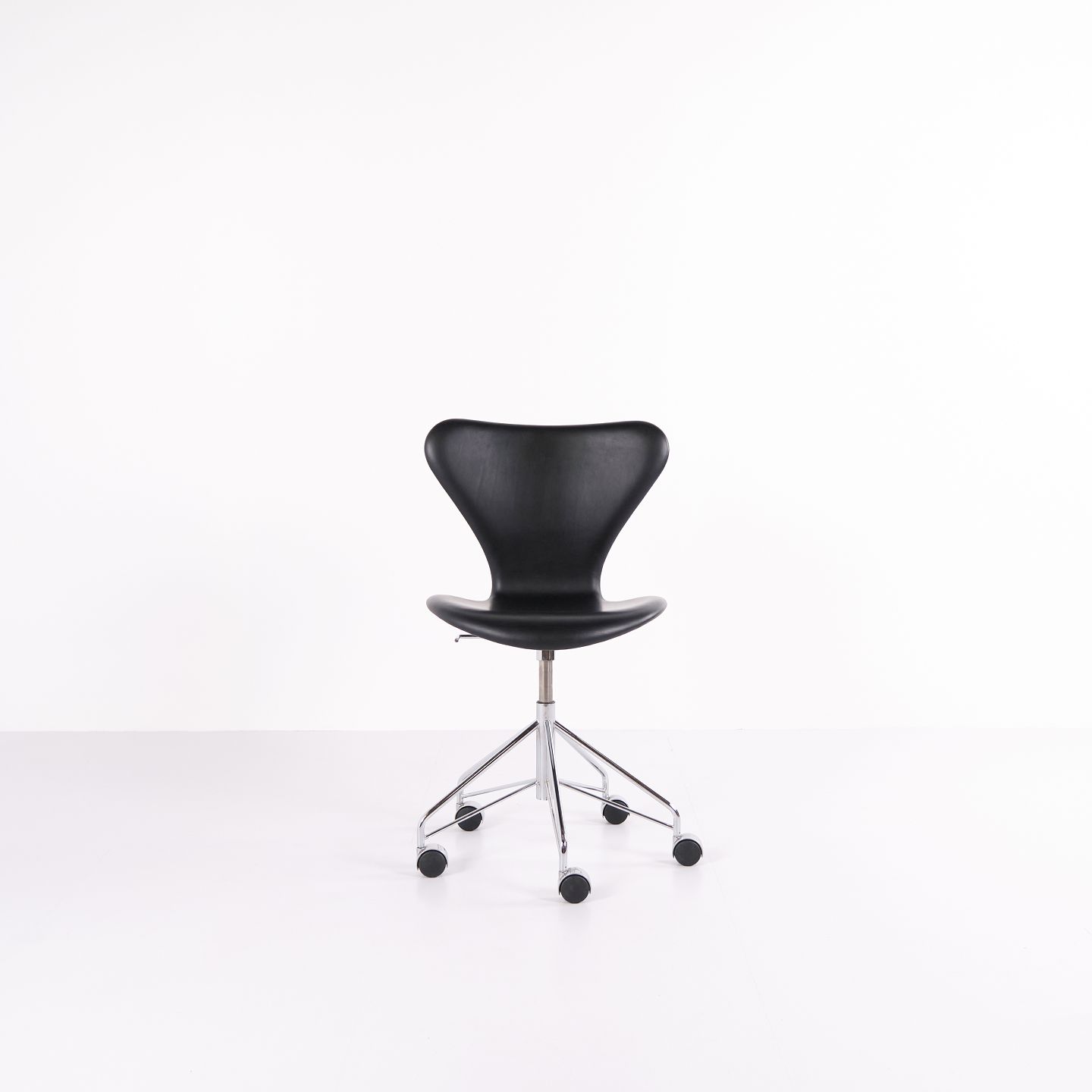 Syver Office chair - Model 3117 - Black leather - Swivel function - Arne Jacobsen - Fritz Hansen