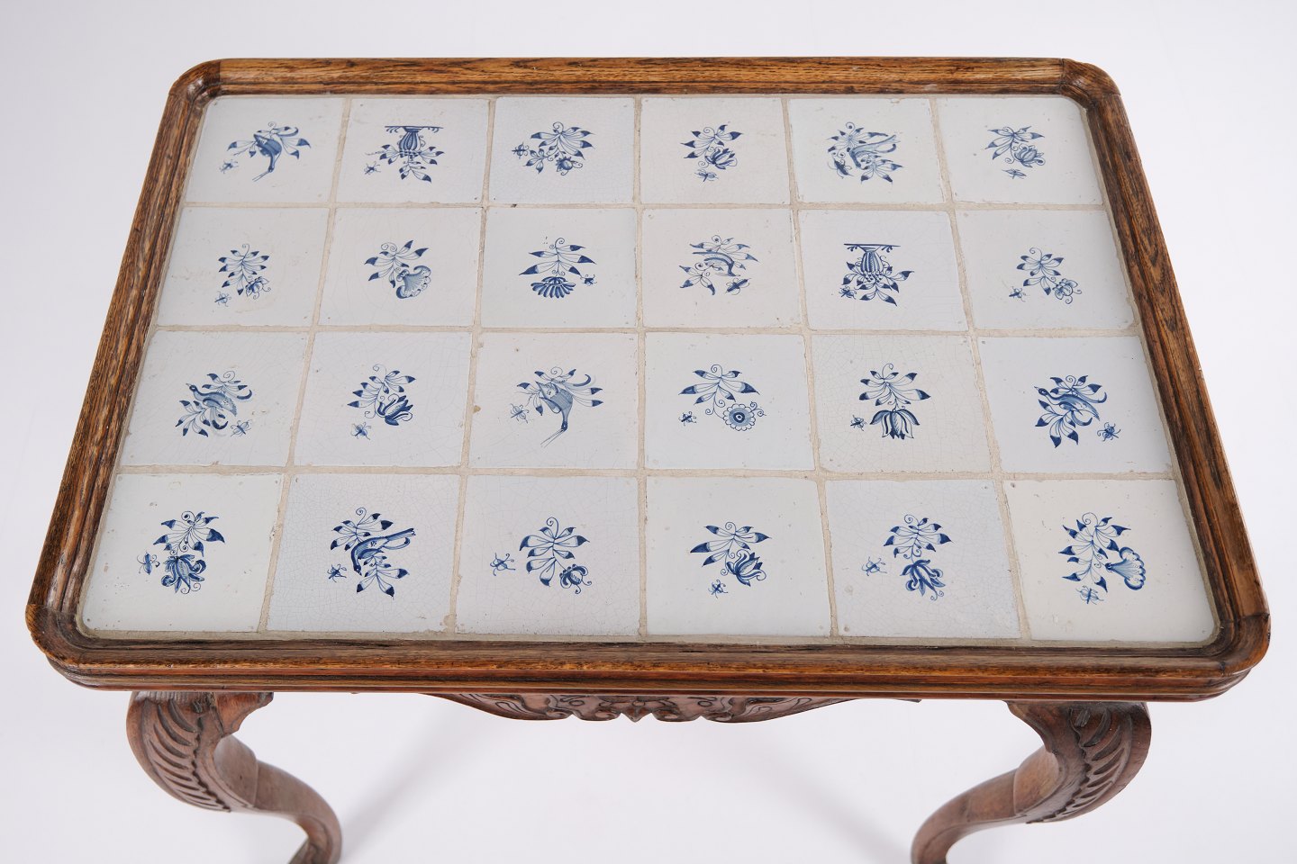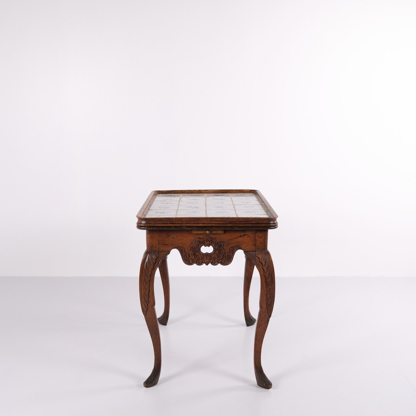 Antique Tile Table - Patinated Oak - Rococo Style - Dutch Tiles - 1780— Origin: Europe