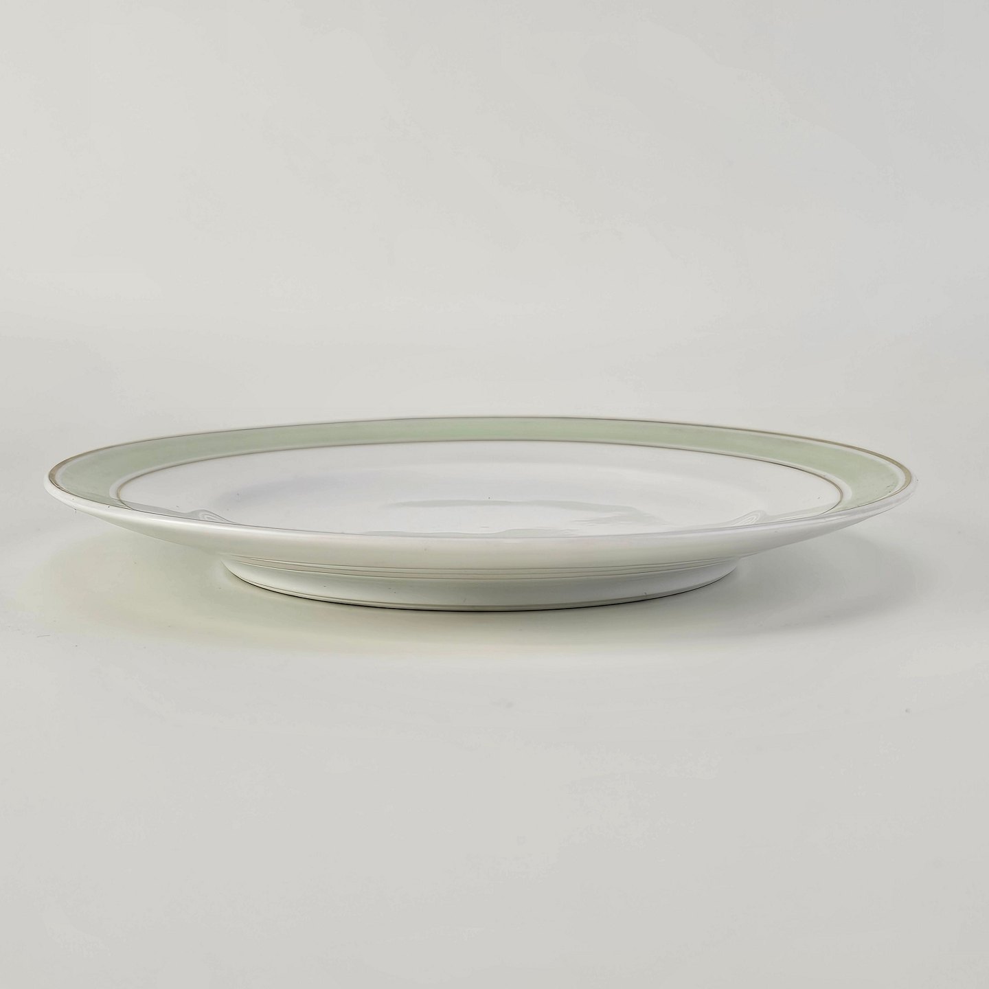 Glat hvidt porcelæn med lysegrøn bord og guldkant